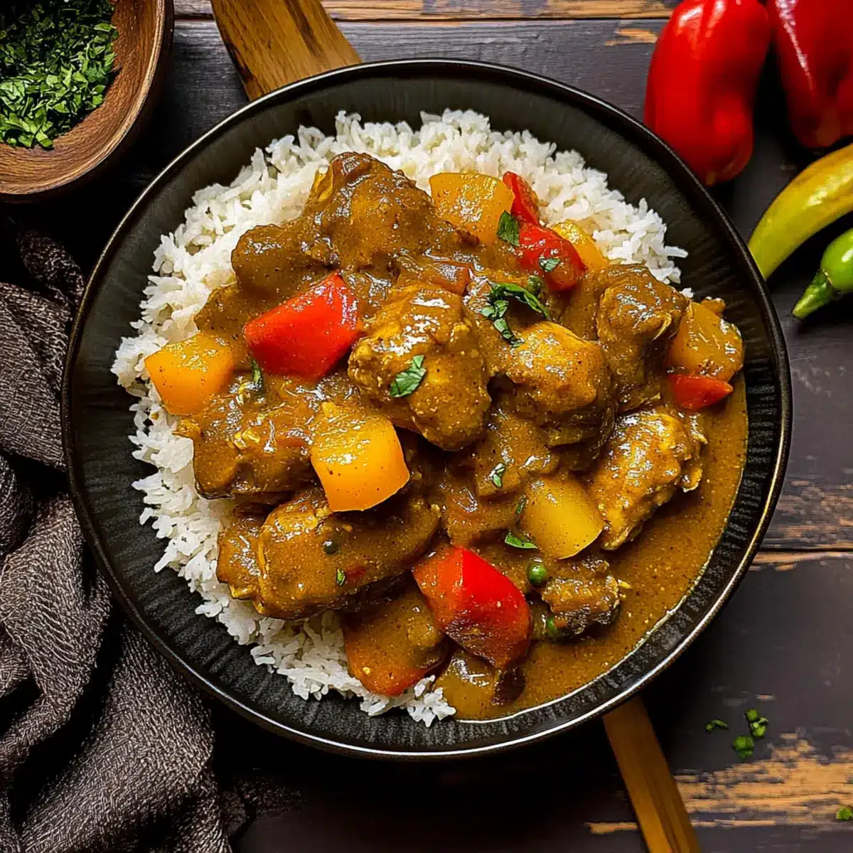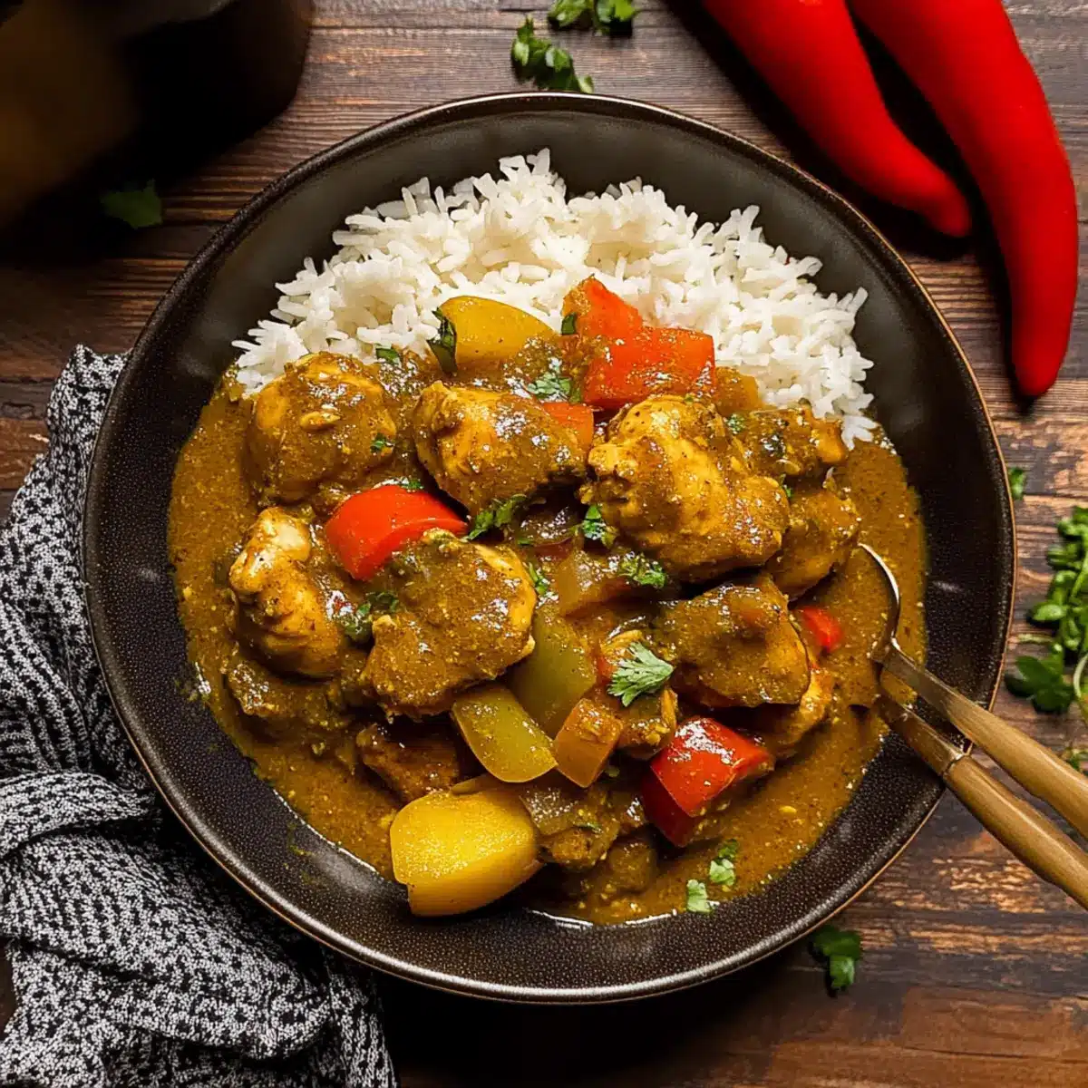 A warm, fragrant bowl of curry chicken paired with delightful sides will create an unforgettable dining experience.
