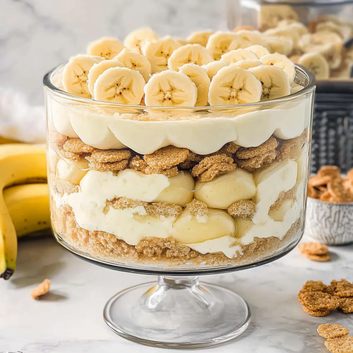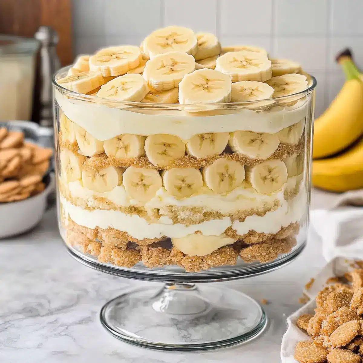 In a large trifle dish or a 9×13 inch pan, start by layering half of the Nilla Wafers at the bottom. Next, add half of the sliced bananas over the cookies, then pour half of the pudding mixture on top, spreading it evenly. Repeat this layering process, finishing with the last of the pudding on top for a stunning presentation.