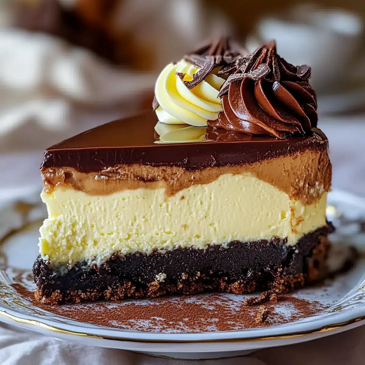 Whipped Cream: A dollop of lightly sweetened whipped cream enhances the creamy layers of the cheesecake while adding an airy lightness that melts in your mouth.