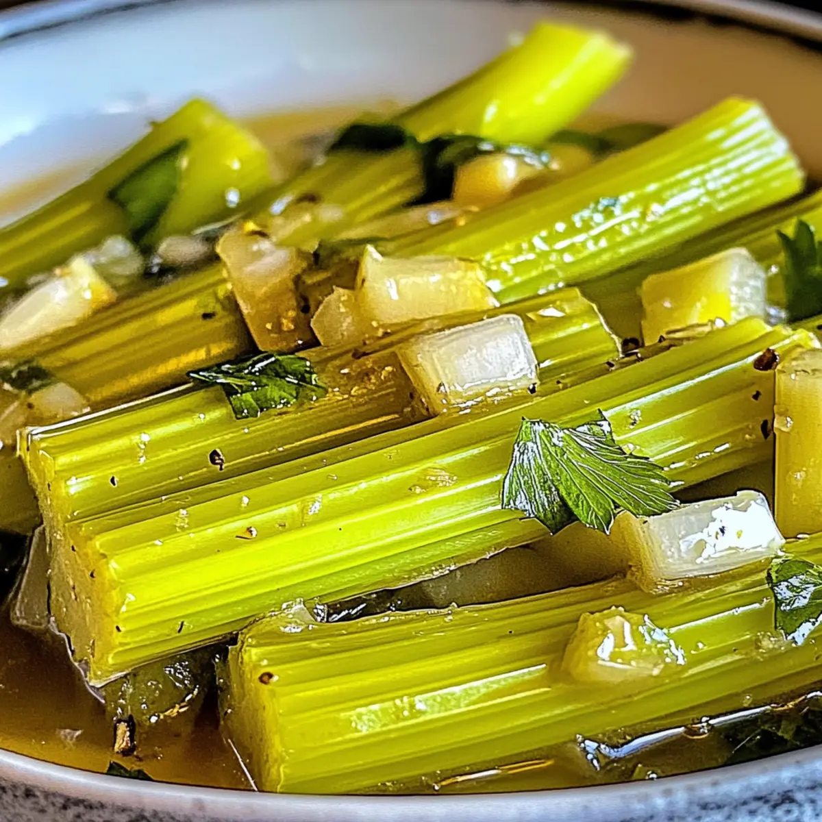 The moment the garlic hits the pan, I can’t help but feel a wave of nostalgia wash over me; it’s the unmistakable sound of comfort cooking that brings back cherished memories of family dinners. Today, I’m excited to share my Braised Celery with Garlic and Butter recipe, transforming humble celery into a show-stopping side dish that everyone will love. This dish is not only an incredible way to elevate your meals, but it’s also incredibly quick and easy to prepare, making it perfect for busy weeknights or intimate gatherings. With its tender texture and rich buttery flavor, this recipe not only impresses your palate but also ensures you stay nourished while you savor every bite. Curious to discover how such a simple ingredient can shine so brightly on your dinner table? Let’s dive in!