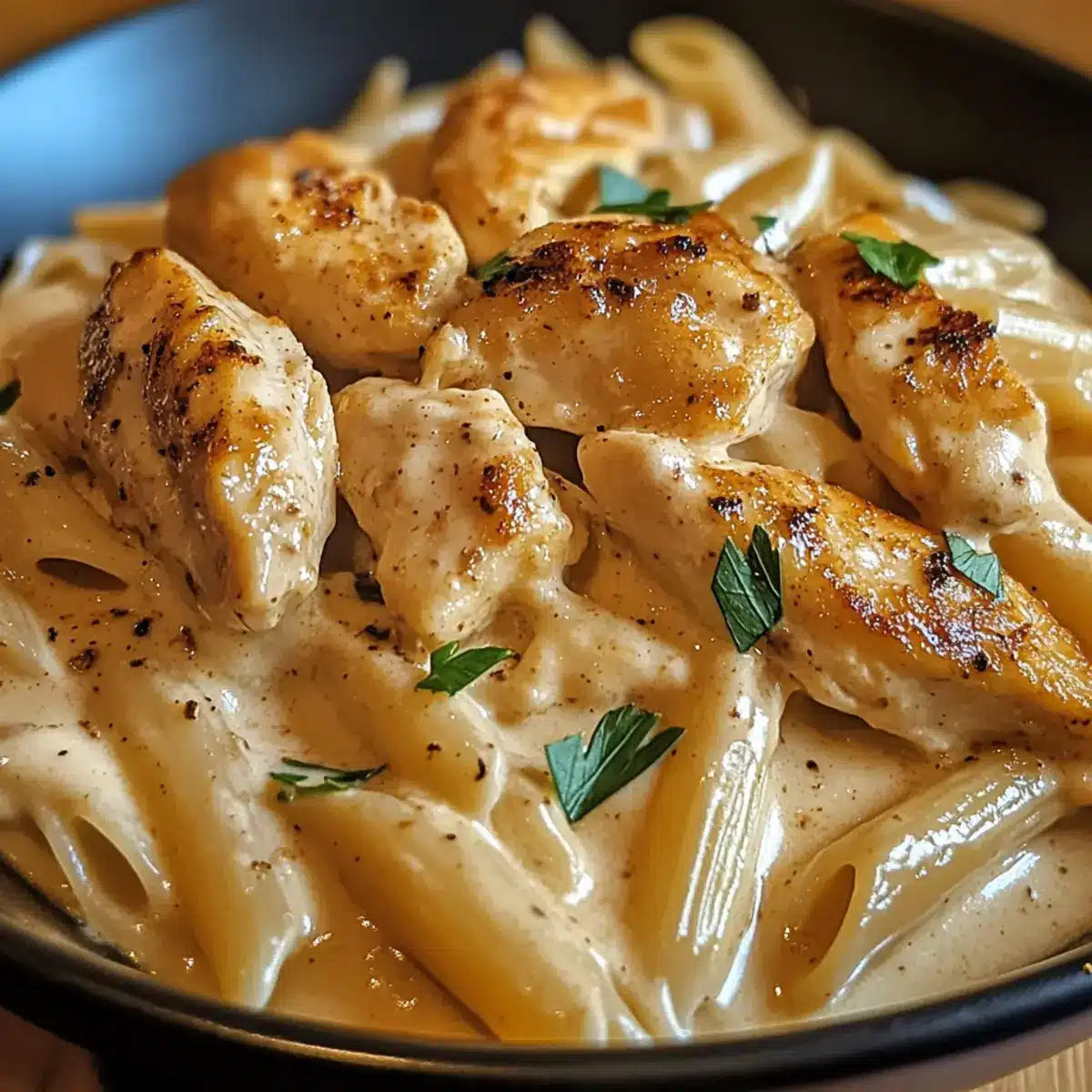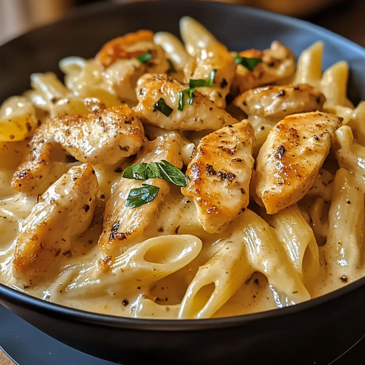 - Combine drained pasta with the sauce, then add sliced chicken. Toss to coat. Optionally, sprinkle extra cheese over the top.