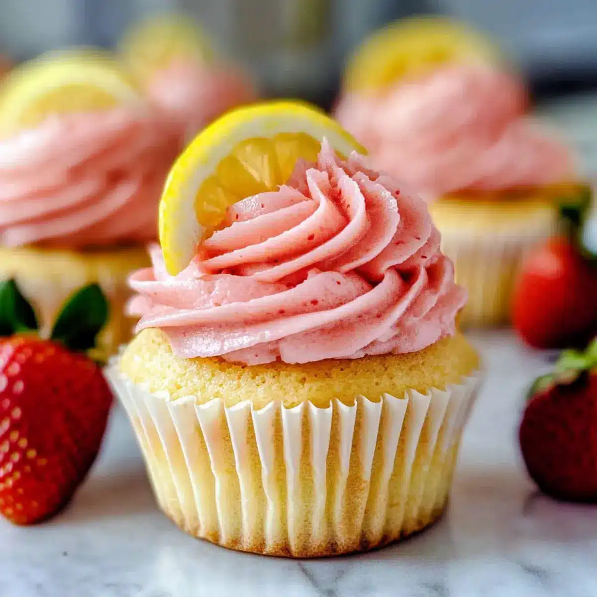 Lemon Cupcakes with Strawberry Frosting for Summer Bliss
