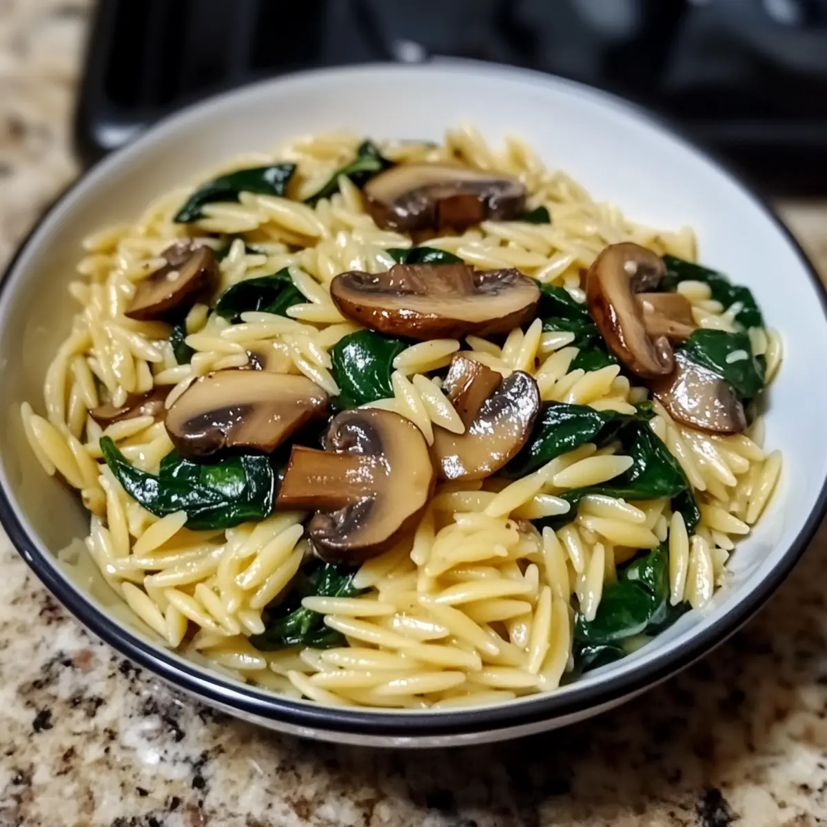 Garlic Butter Orzo with Mushrooms and Spinach: Cozy Weeknight Delight