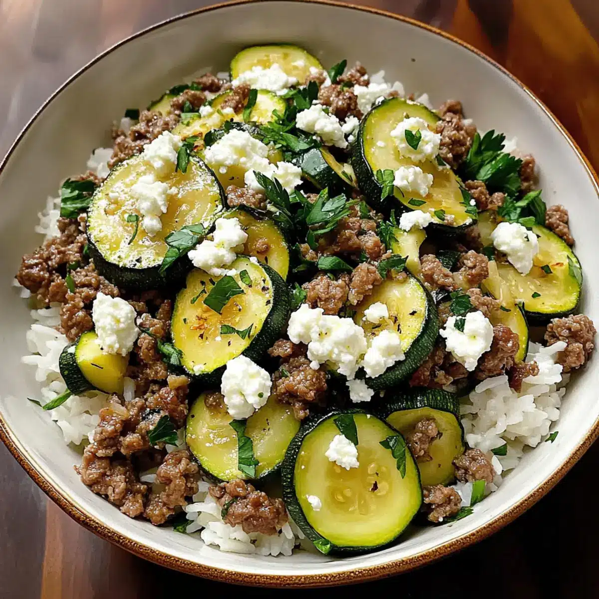 Savor the Flavors: Greek-Style Beef and Zucchini Rice Bowl