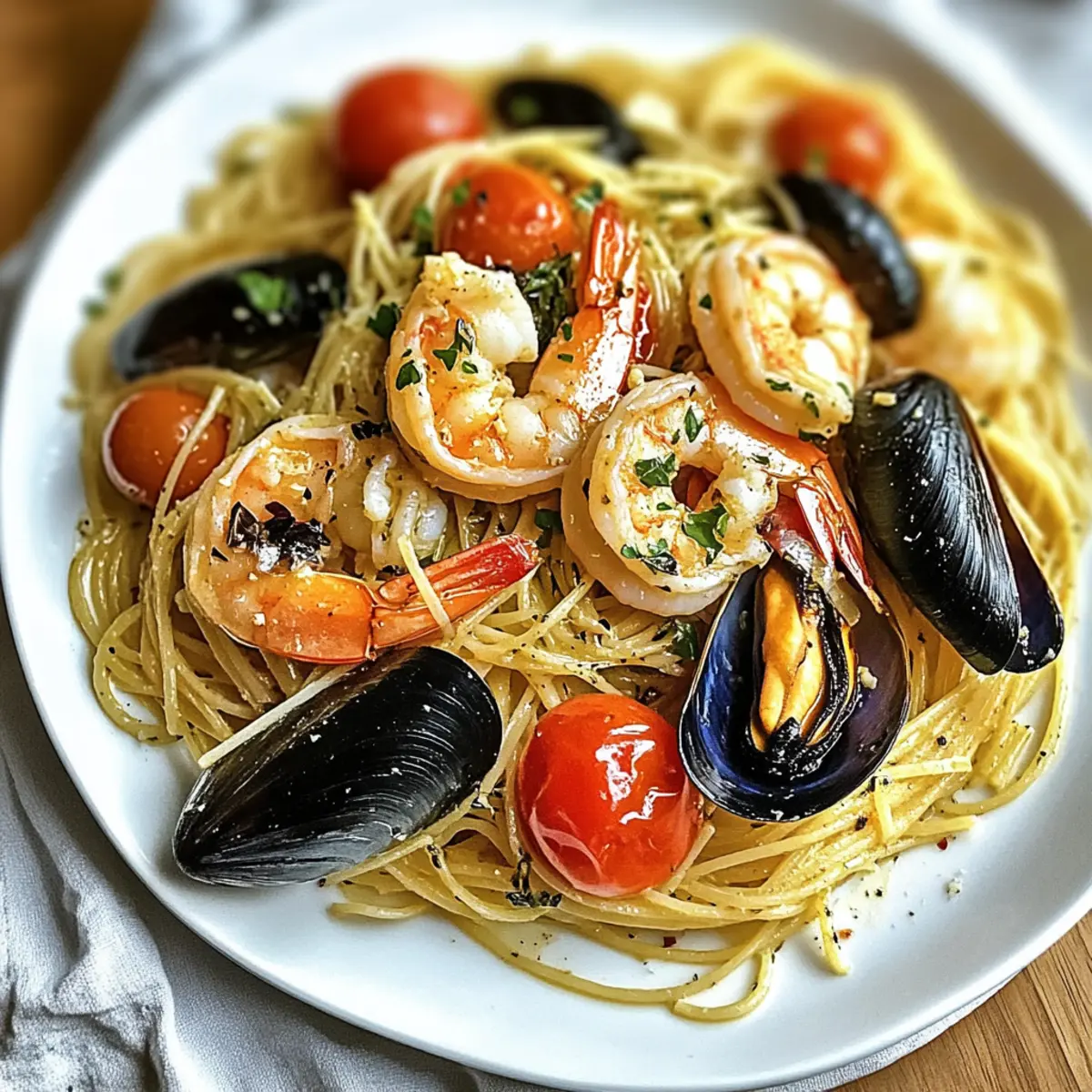 Savory Garlic Butter & White Wine Seafood Pasta Delight