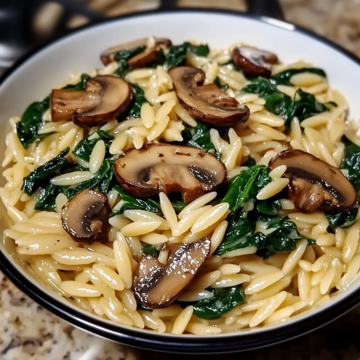 Garlic Butter Orzo with Mushrooms and Spinach: Cozy Comfort Food