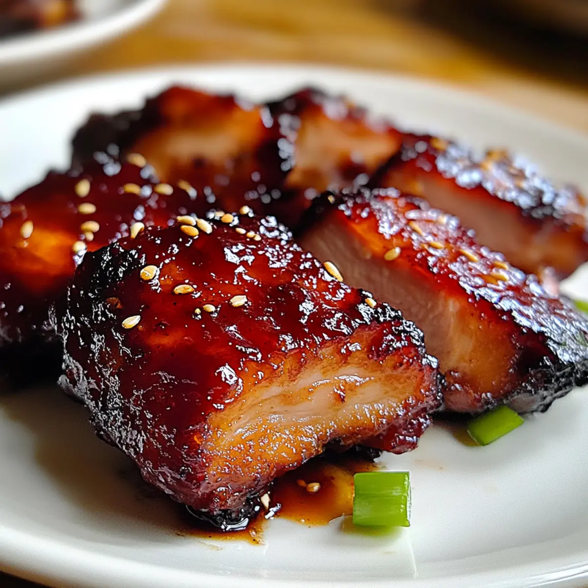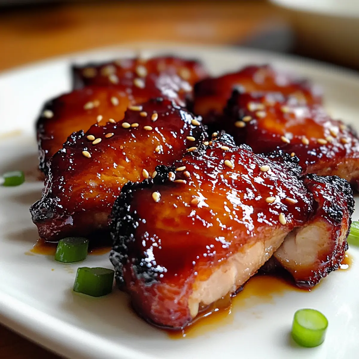 Once finished, remove the chicken from the heat and let it rest for a few minutes to allow the juices to redistribute. As you plate, garnish your Char Siu Chicken with toasted sesame seeds and sliced green onions for added color and crunch. Serve hot, and enjoy the wonderful blend of flavors!