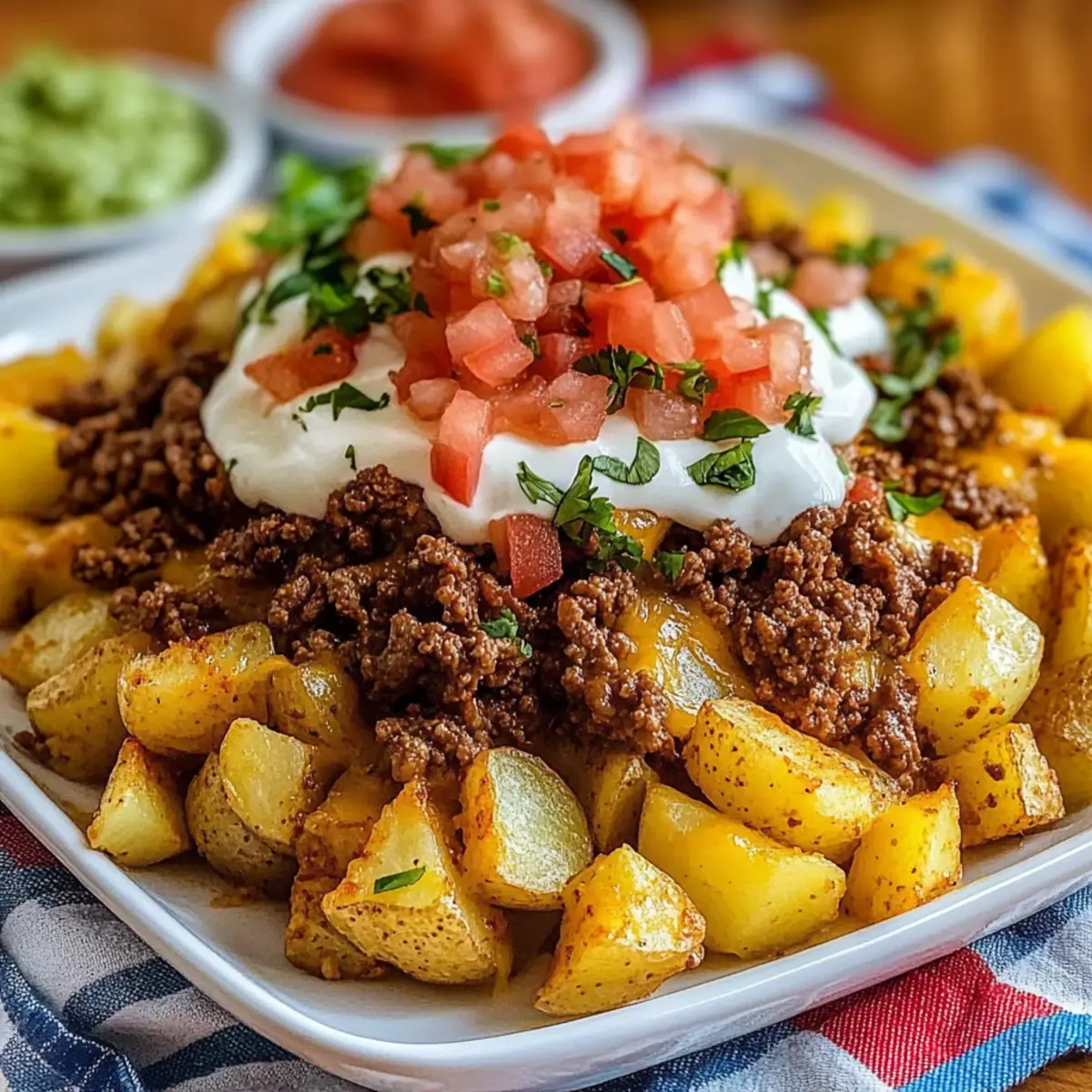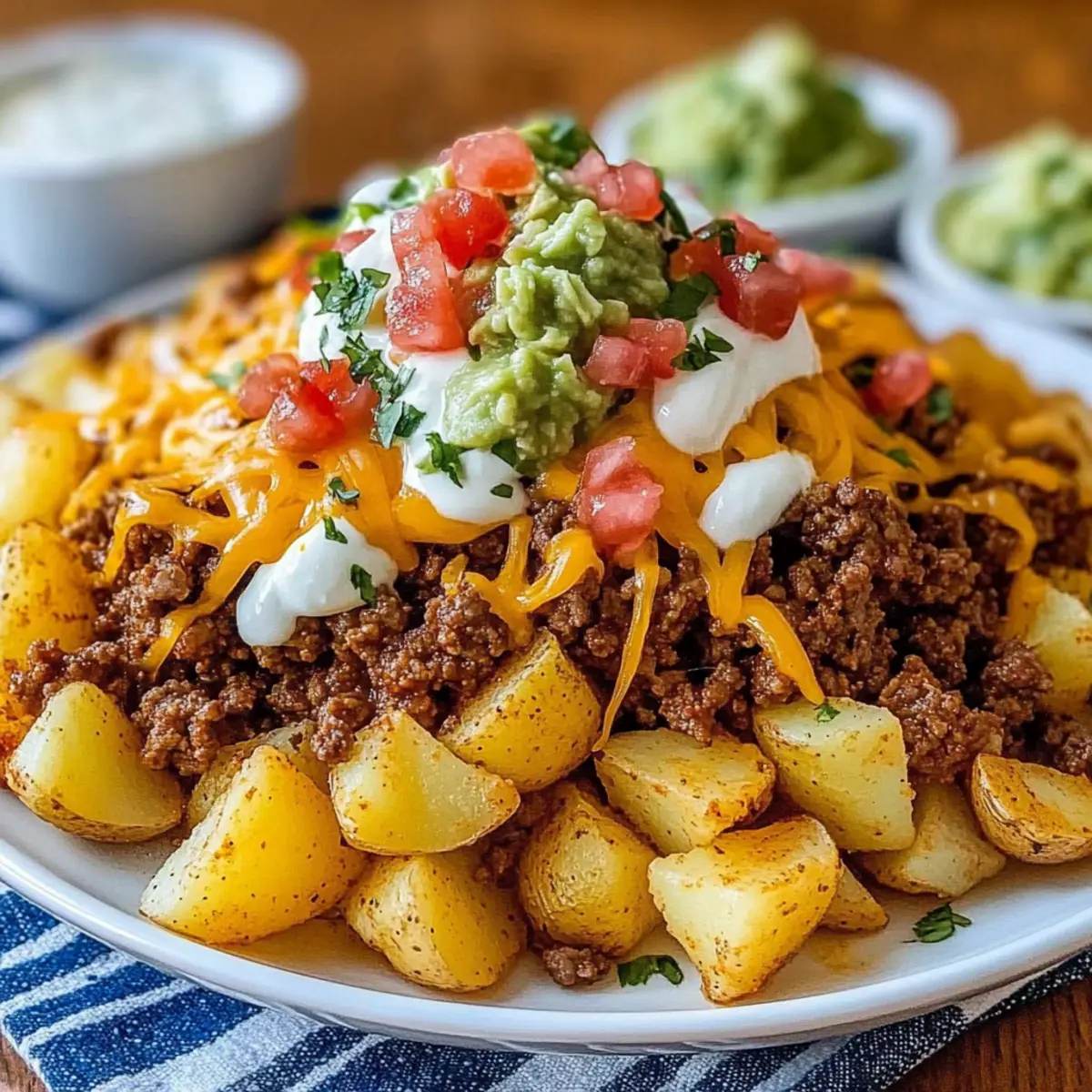 Flavor Explosion: These Cheesy Taco Potatoes deliver a burst of savory goodness, with perfectly seasoned ground beef and layers of melted cheese.