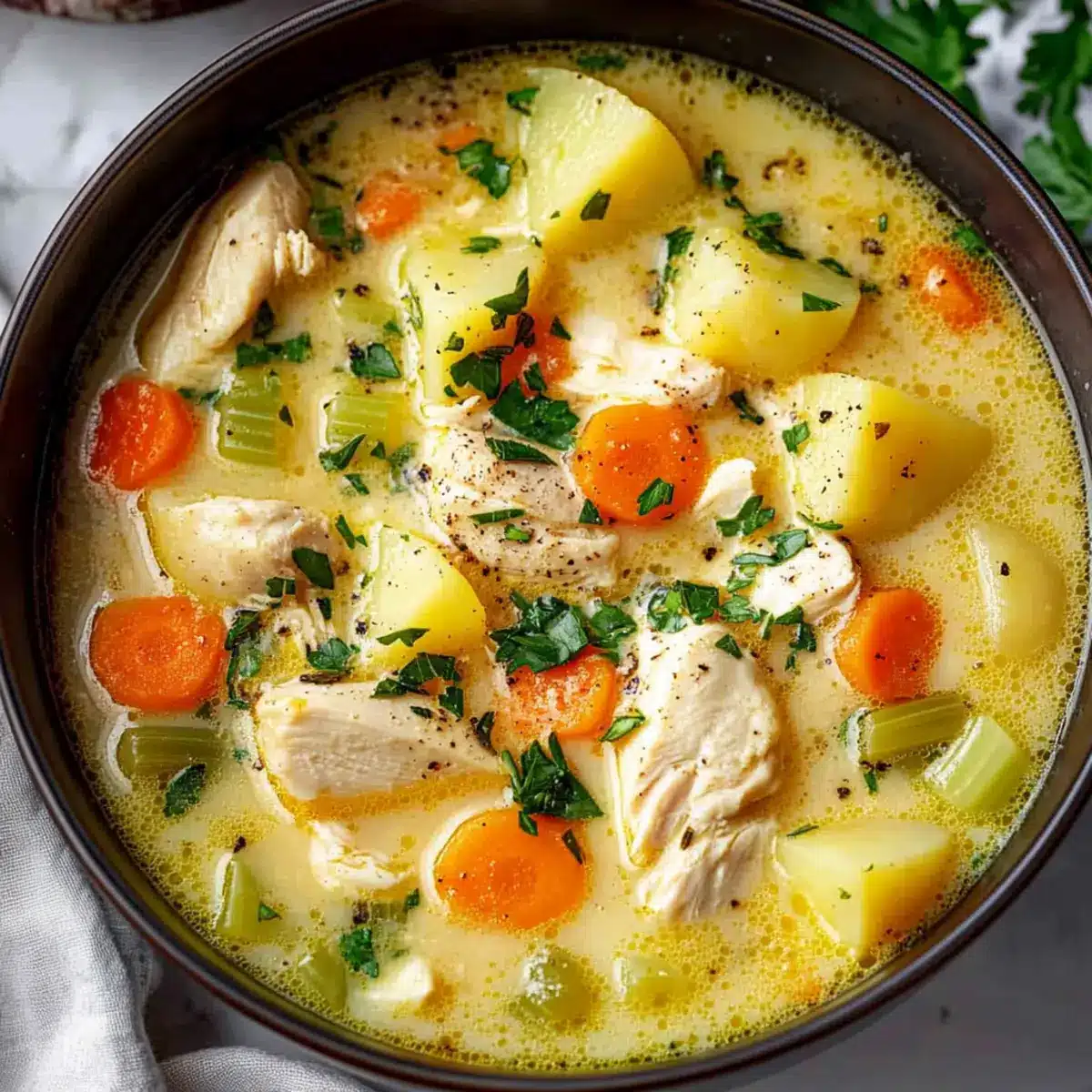 “Can you smell that?” my partner asked one chilly evening, as the savory aroma of Comforting Chicken Soup with Potatoes wafted through our home. There’s something undeniably heartwarming about a steaming bowl of soup, especially after a long day. This quick comfort food not only brings a sense of nostalgia but is also budget-friendly and perfect for meal prep. With tender chicken, Yukon Gold potatoes, and a medley of fragrant veggies, it’s like a warm hug in a bowl. The best part? You can whip it up all in one pot in under an hour! So, what are you waiting for? Grab your favorite cozy blanket, and let’s dive into this delightful recipe together.
