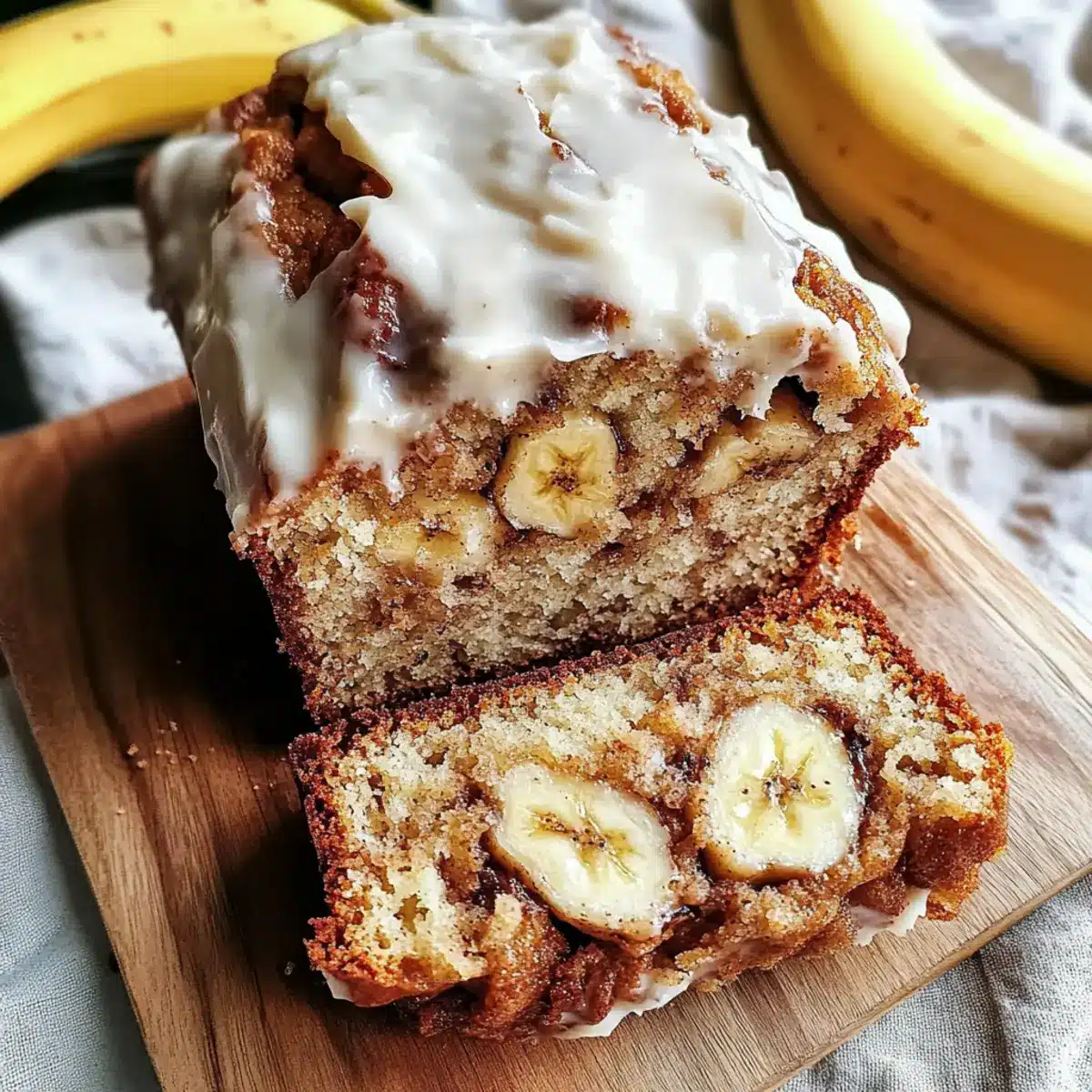 As the warm, sweet scent of cinnamon wafts through my kitchen, I can’t help but feel a rush of nostalgia. This Cinnamon Roll Banana Bread is my go-to recipe whenever I want to blend two beloved treats into one scrumptious loaf. It’s incredibly simple to prepare, making it a perfect choice for busy mornings or afternoon snacks. Plus, this delightful bread is a crowd-pleaser, whether you’re serving it at brunch or indulging in a slice with your evening tea. The cozy swirls of cinnamon and the signature cream cheese frosting bring a comforting twist, making it hard to resist a second slice. What variations will you add to make it your own—chocolate chips or maybe some nuts? Let’s dive into this recipe that promises to sweeten your day!