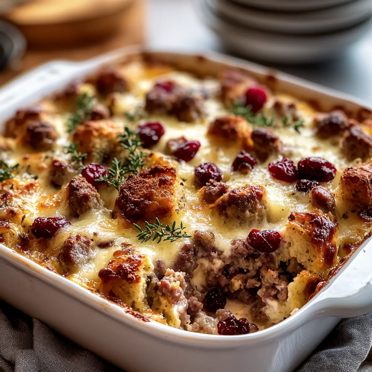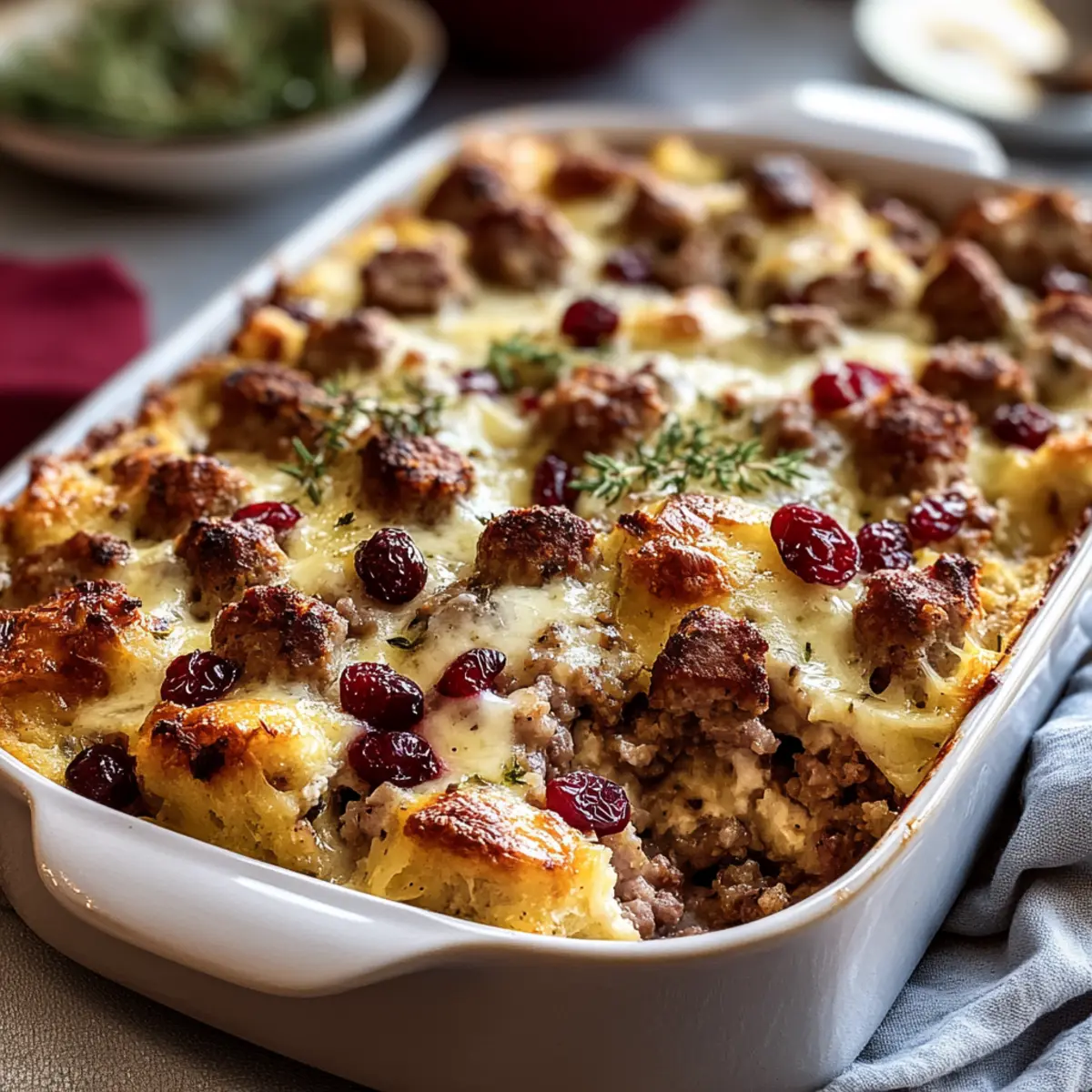 Cranberry Sausage & Stuffing Breakfast Casserole to Brighten Mornings