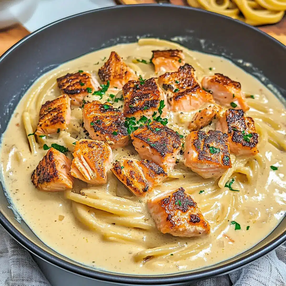 As I tossed the pasta into the boiling water, a comforting aroma wafted through my kitchen, instantly transporting me to cozy evenings spent with loved ones. That’s the magic of my Creamy Salmon Pasta—a dish that marries rich, savory flavors with effortless preparation. In just 30 minutes, you can whip up this high-protein delight that not only satisfies those hunger pangs but also feels like a warm embrace on a chilly night. The tender salmon nestled in a luscious sauce clinging to al dente pasta is pure culinary bliss. Whether you’re looking to impress for a date night or need a quick family meal that pleases everyone, this dish checks all the boxes. Curious about how this magical pasta comes together? Let’s dive into the recipe!