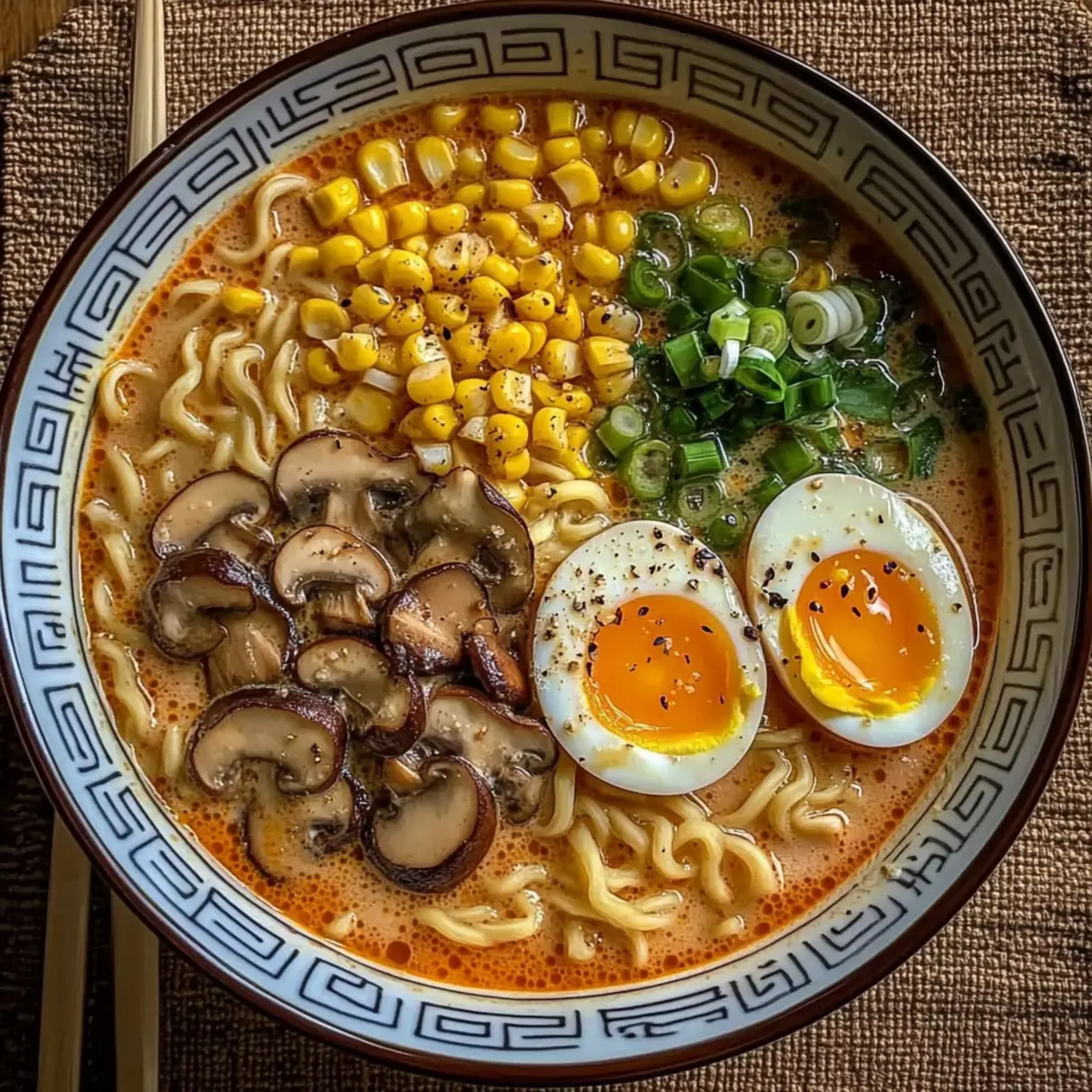 Top each bowl with sliced shiitake mushrooms, a generous scoop of corn kernels, and halved soft-boiled eggs for protein. Scatter some freshly sliced scallions on top for a pop of color and added freshness, enhancing both the presentation and flavor of your dish.