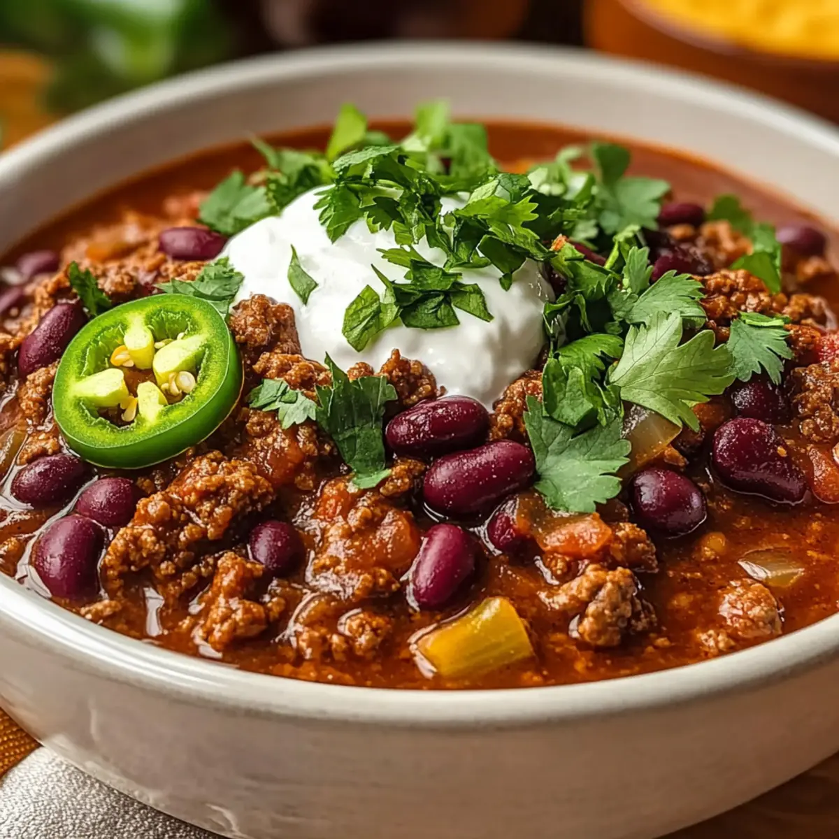 Pico de Gallo: Fresh, zesty pico de gallo brings a lively crunch and acidity that cuts through the chili’s richness. The colorful blend of flavors elevates your dining experience!