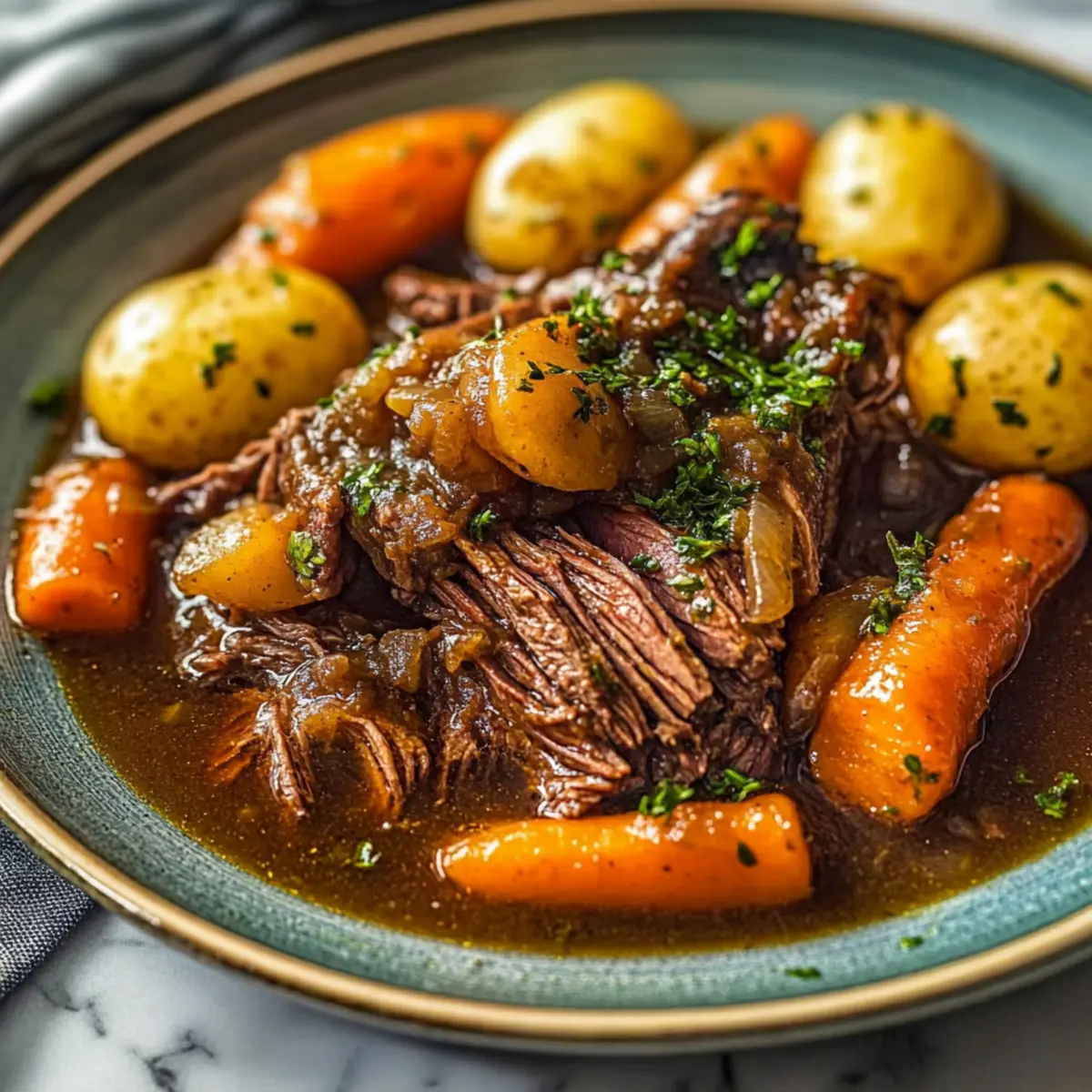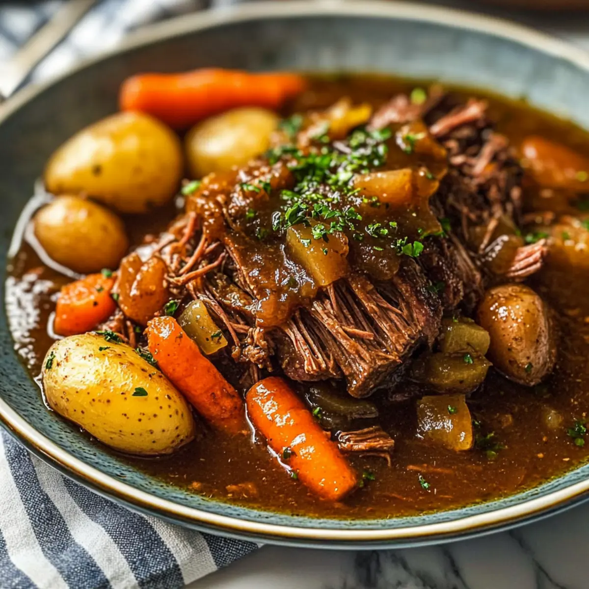 These Ultimate Crockpot Chuck Roast preparations are perfect for meal prep enthusiasts! You can season and marinate the chuck roast up to 24 hours in advance. Simply mix your garlic, salt, pepper, and Italian seasoning, then rub it all over the meat and refrigerate it to enhance the flavors overnight. Furthermore, you can chop the vegetables (onions, carrots, and potatoes) up to 3 days ahead and store them in an airtight container in the fridge to keep them fresh. When you’re ready to cook, just layer the vegetables in the slow cooker, place the roast on top, add your beef broth and flavor enhancer, and you’re good to go! The best part? Your quick prep ensures that dinner is as satisfying and delicious as ever, even on the busiest nights.