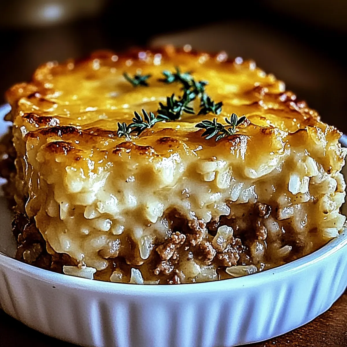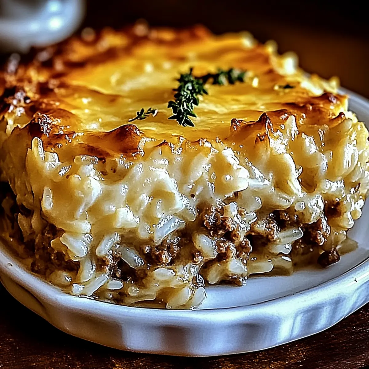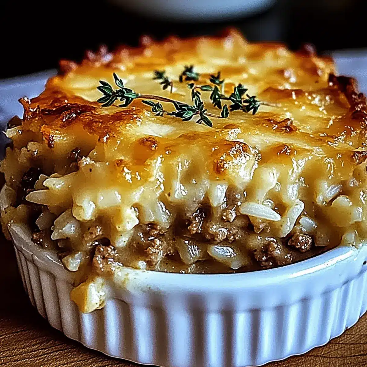 Comforting Warmth: This Savory French Onion Ground Beef and Rice Casserole envelops you in cozy flavors that are simply irresistible.