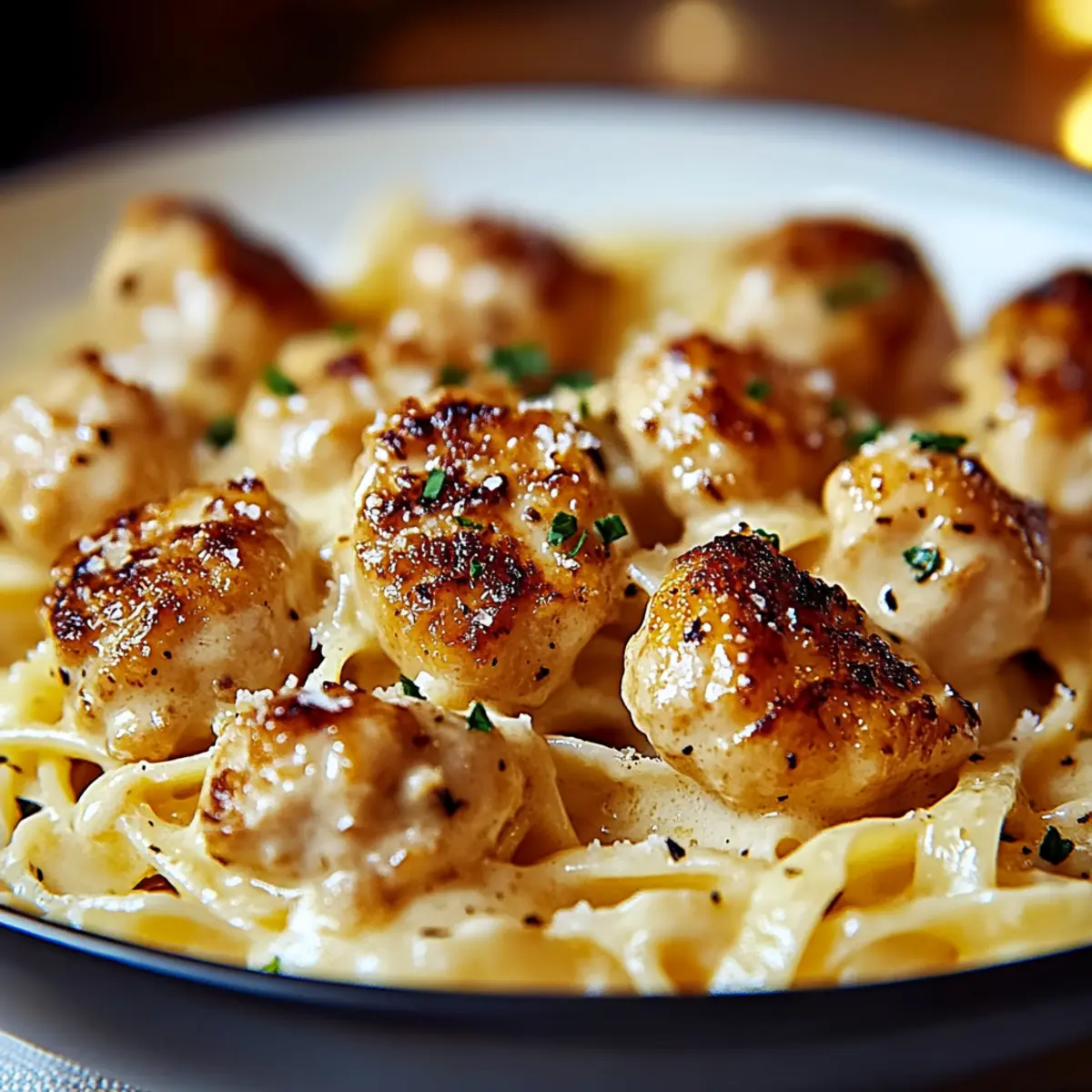 Comfort food at its finest: Silky cream and tender chicken bites create a luxurious feel, making each bite a little moment of joy.