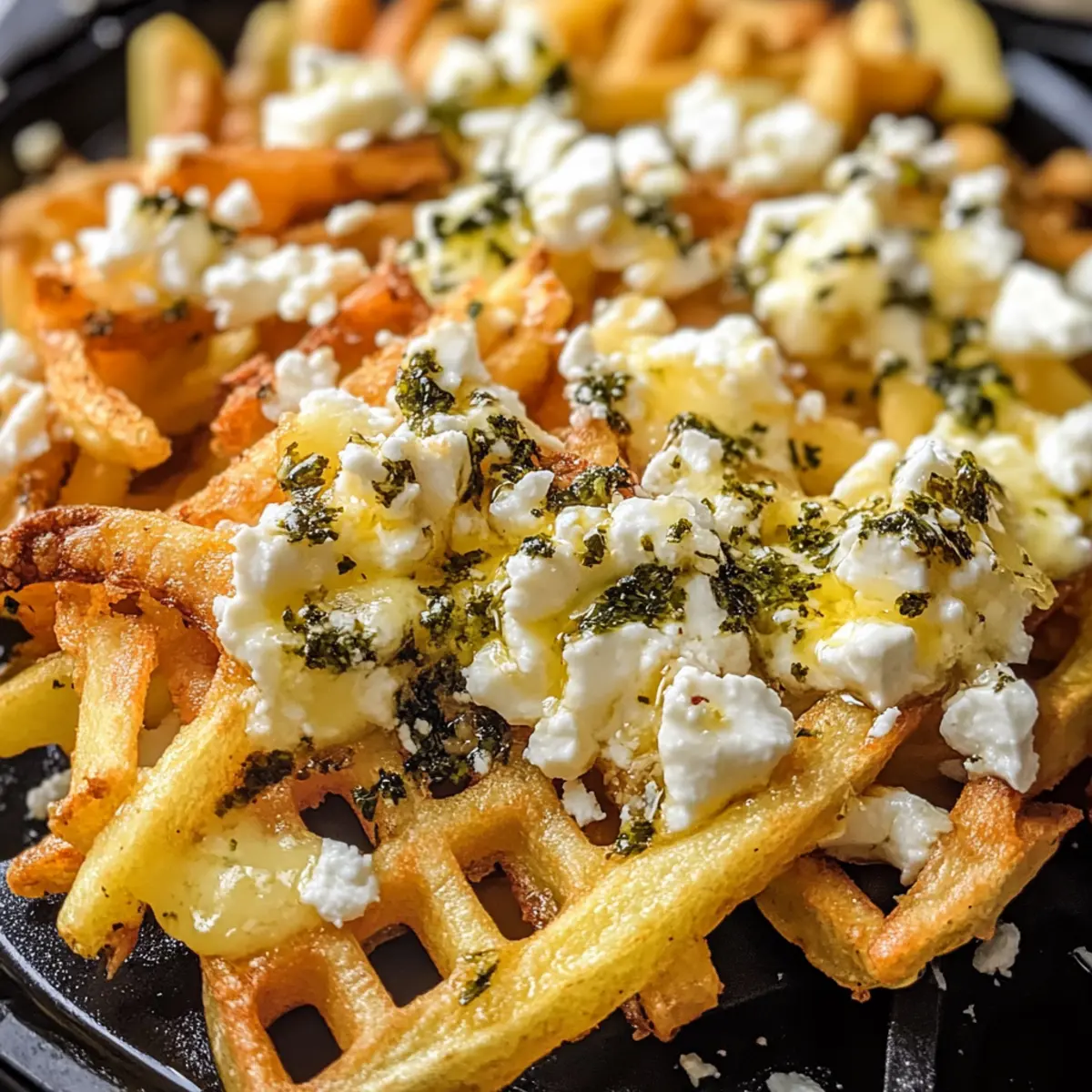 Begin by cooking your waffle fries according to the package instructions or your preferred method—bake them at 425°F (220°C) for 20-25 minutes until they are golden and crispy. If using an air fryer, cook at 400°F (200°C) for about 15 minutes, shaking halfway through. The fries should be irresistibly crunchy as the perfect base for your Greek Lemon Feta Fries.