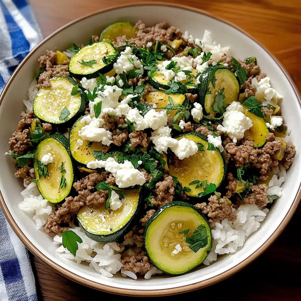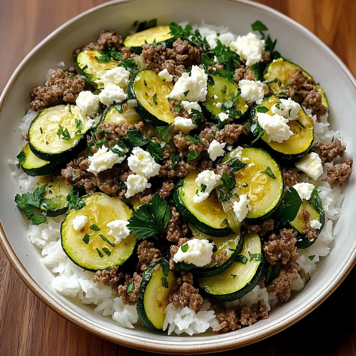 As I stirred the pot, the aromatic scent of cumin and oregano wafted through my kitchen, transporting me straight to a sunlit Mediterranean market. My Greek-Style Beef and Zucchini Rice Bowl is the perfect weeknight solution when I crave something comforting yet vibrant. This easy dinner recipe marries savory ground beef and fresh zucchini with fluffy rice, all enhanced by a splash of lemon for that delightful zing. Not only is it quick to prepare, but it also feels like a warm hug on the plate. Plus, the beauty of this dish lies in its versatility—ideal for both lunch and dinner. Are you ready to embrace the flavors of Greece and elevate your home-cooked meals? Let’s dive in!