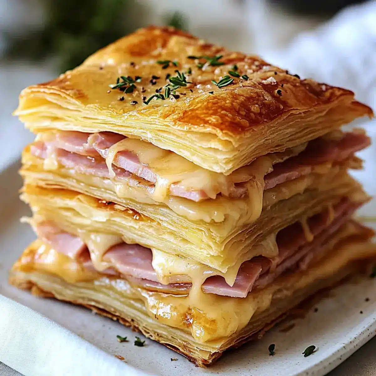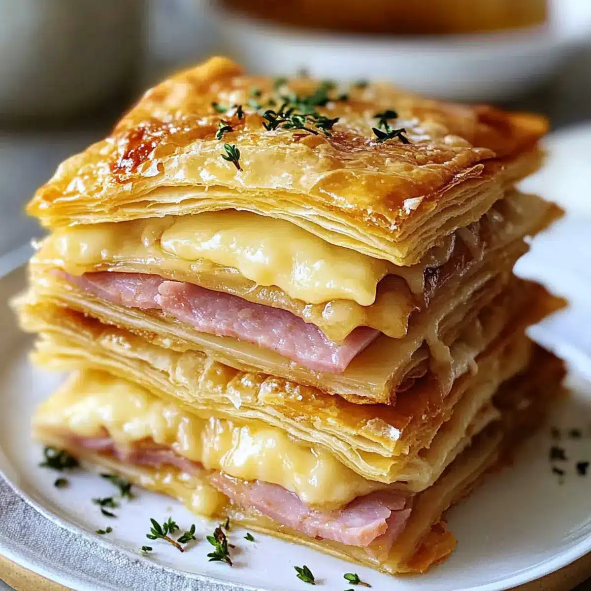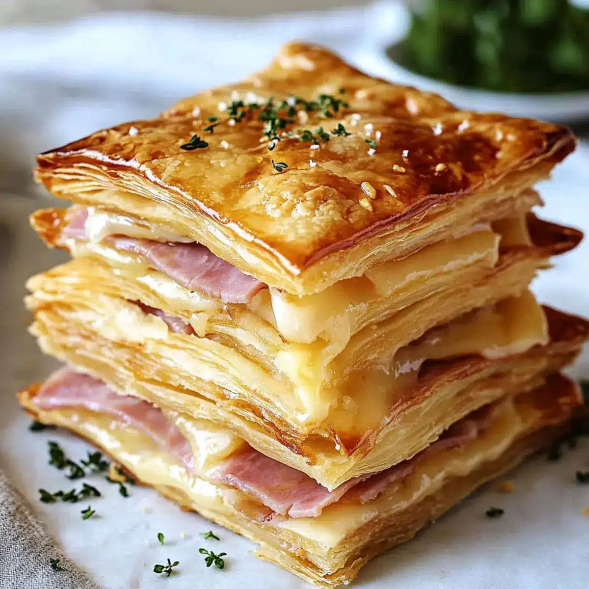 Crispy Ham & Cheese Puff Pastry Stacks for Easy Snacking