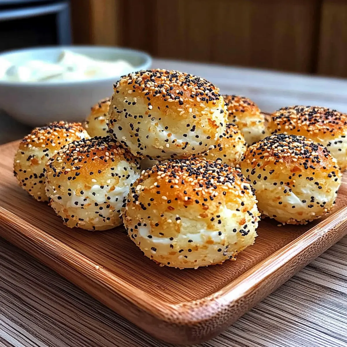Quick, Effortless Delight: These high-protein bagel bites can be made in just 15 minutes, taking the stress out of snack time. Healthy Indulgence: With approximately 8g of protein and only 95 calories per bite, they fit seamlessly into any wellness journey. Pleasantly Creamy: The rich cream cheese center adds a delicious surprise, making every mouthful a joy. Versatile Ingredients: Feel free to swap in your favorite flavors or stick to gluten-free for a tailored treat. If you’re on the lookout for more high-protein recipes, don’t miss our High Protein Beef for meal ideas or the wholesome Breakfast Burrito High for your mornings!
