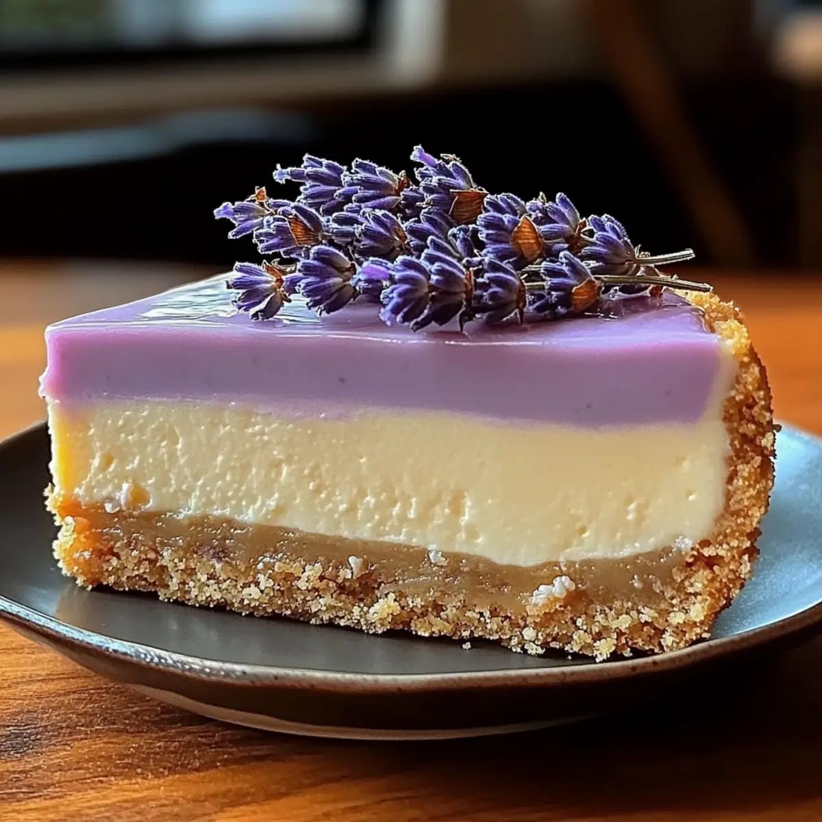 Slice the cheesecake with a sharp knife and serve chilled. Each slice showcases the beautiful layers of your creation and is sure to impress your family or guests. Enjoy the creamy texture and floral notes that make this dessert a true showstopper!