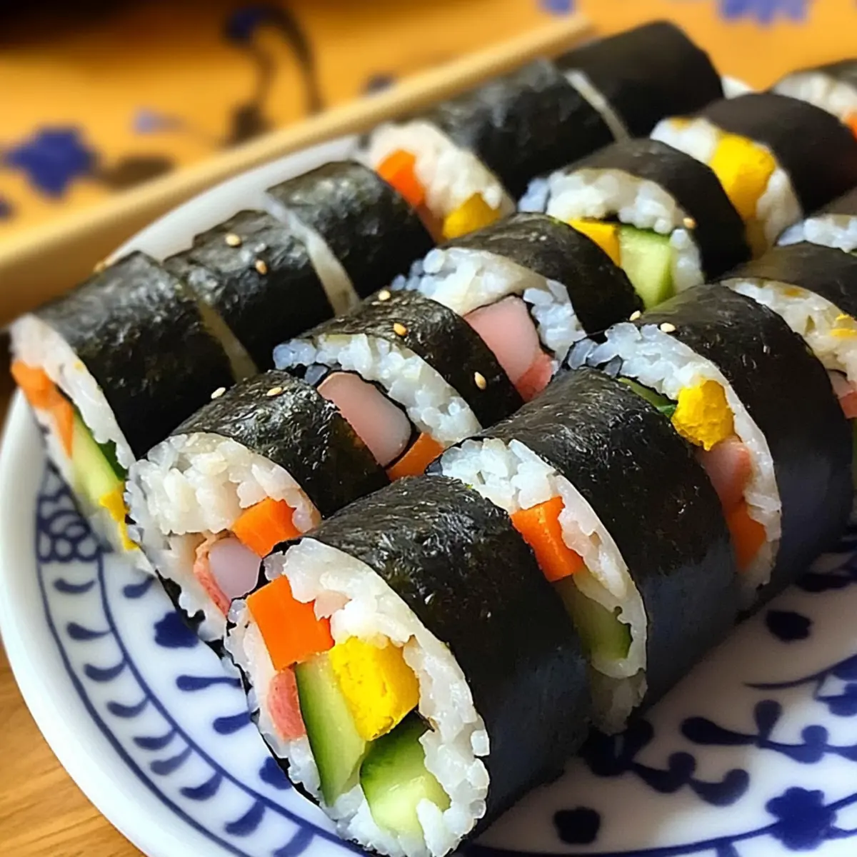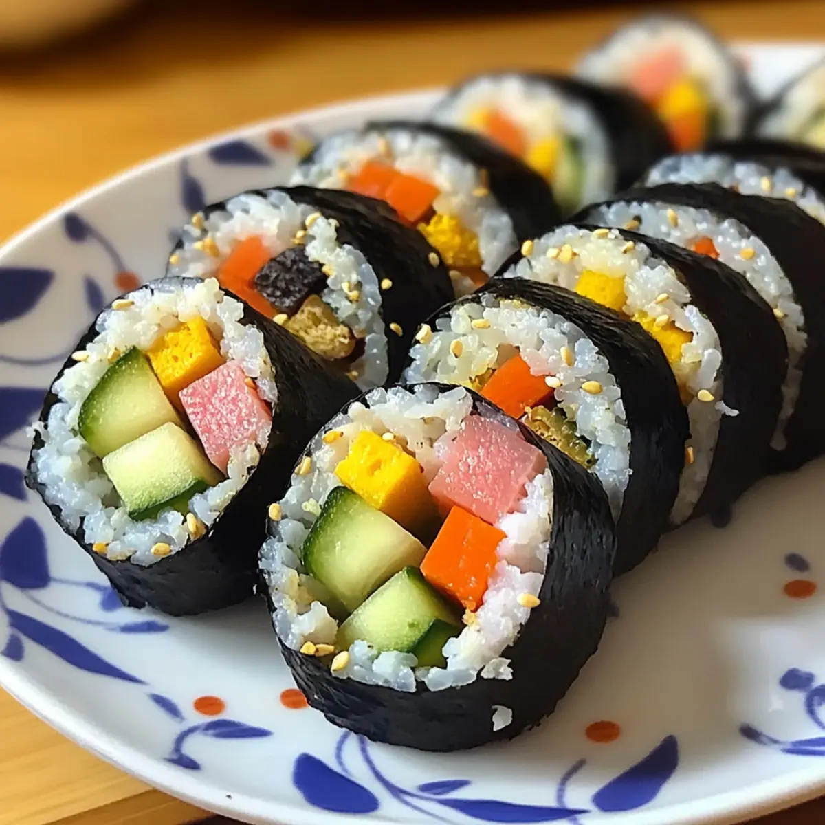 Certainly! To freeze your kimbap, wrap each roll tightly in plastic wrap and then place them inside a freezer bag. They will retain their flavor for about 1 month. When you’re ready to enjoy them, simply thaw in the fridge overnight for the best results. You can also reheat the kimbap by covering it with a wet paper towel and microwaving for 30 seconds, which helps maintain moisture.