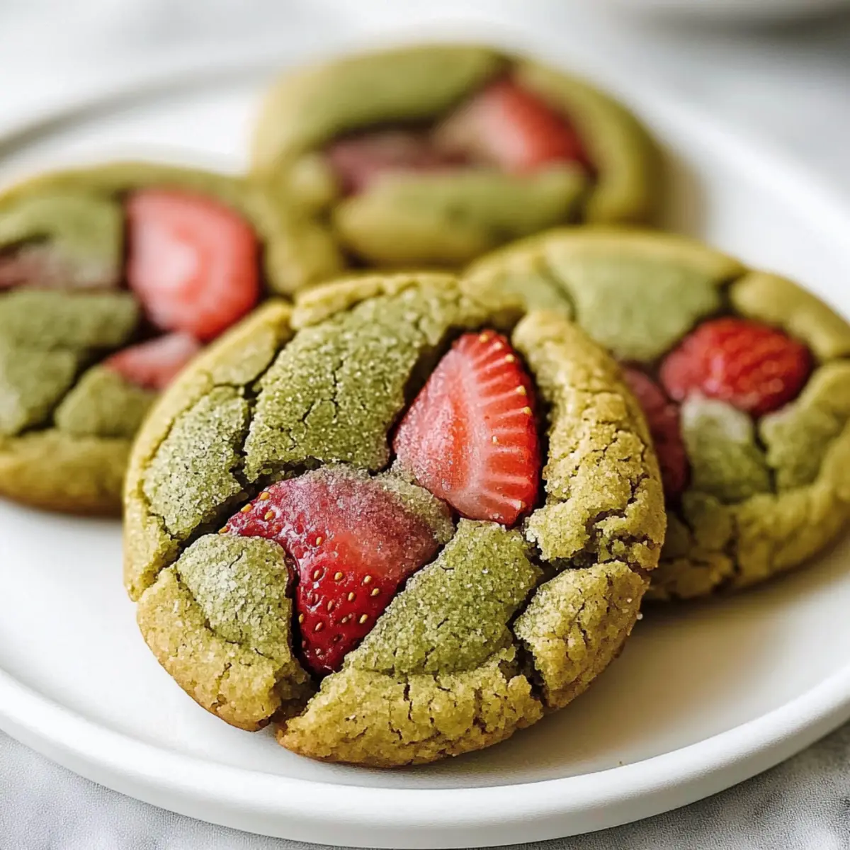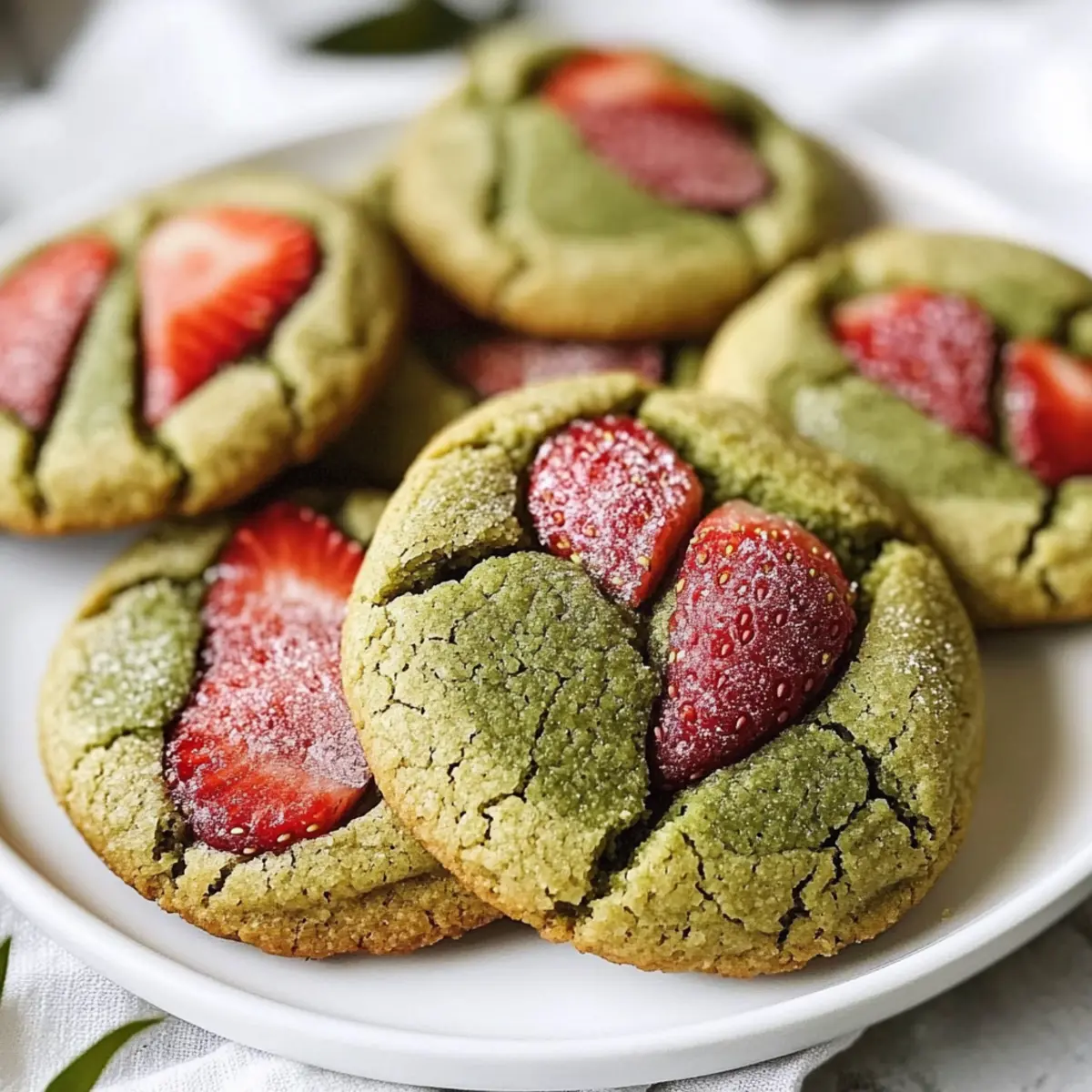 Indulge in the world of flavors as you create the perfect meal to complement these delightful cookies, brimming with vibrant matcha and strawberries.
