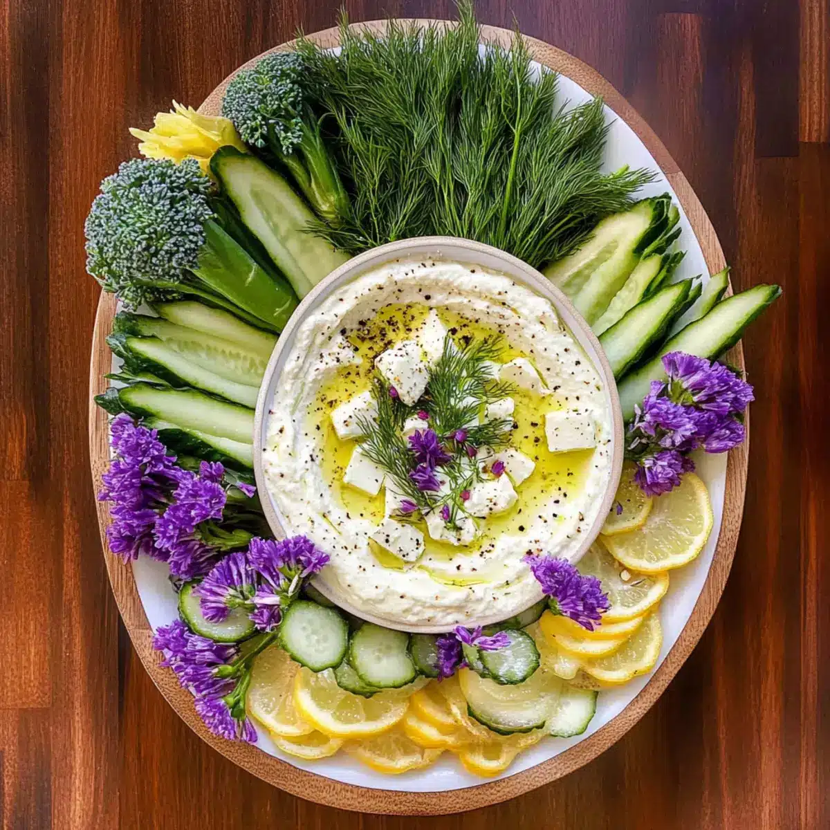 Drizzle a bit more olive oil on top of the dip for a touch of shine, then sprinkle with freshly chopped dill and a dash of black pepper. This not only adds flavor but also introduces vibrant colors, making your Mediterranean Lemon Feta Dip eye-catching. Serve it immediately with an array of fresh veggies or crispy chips.