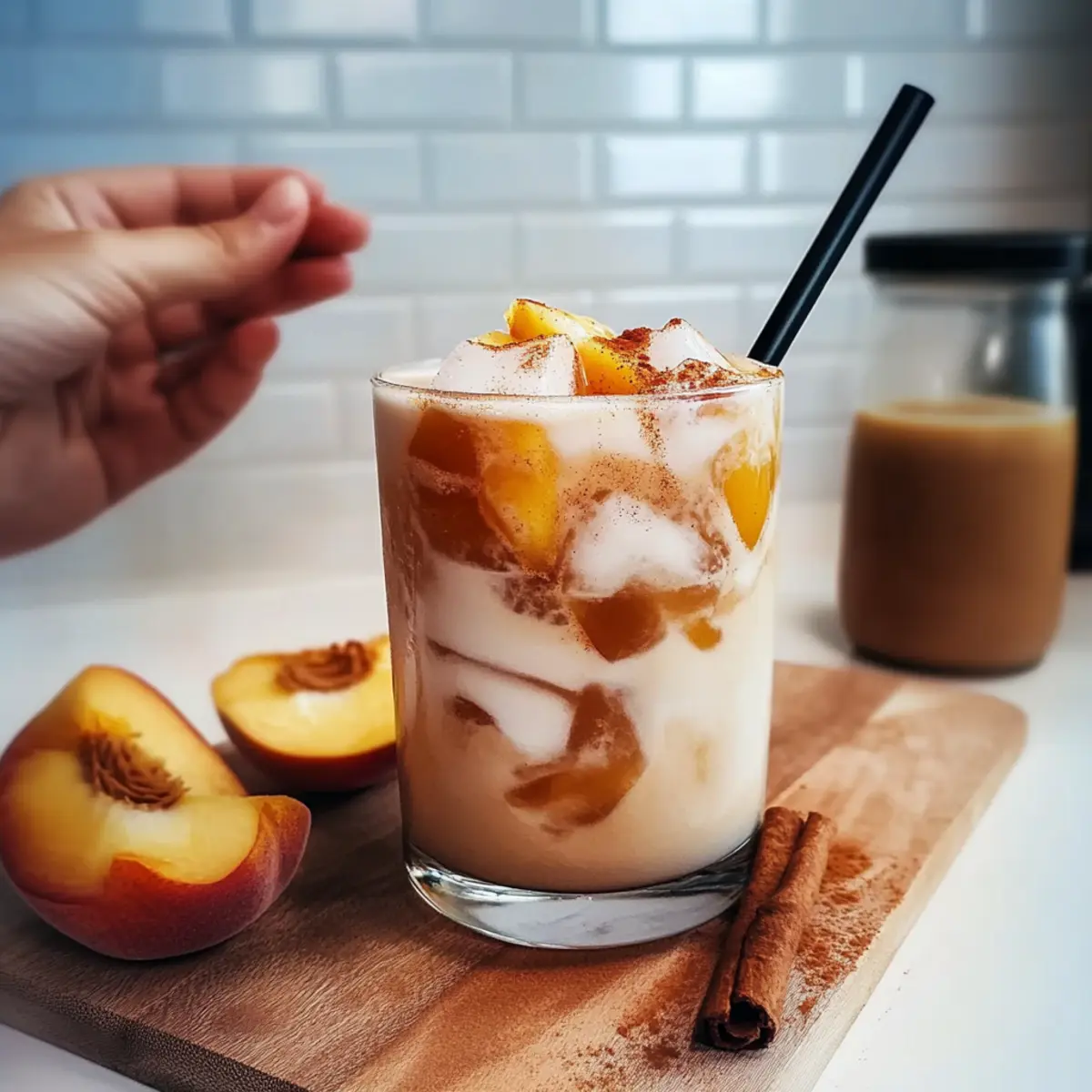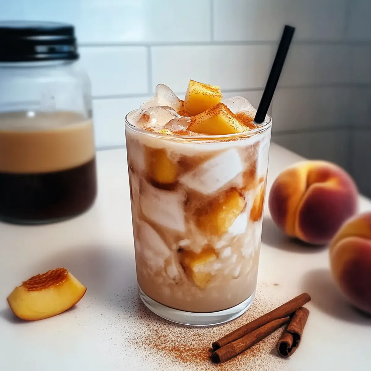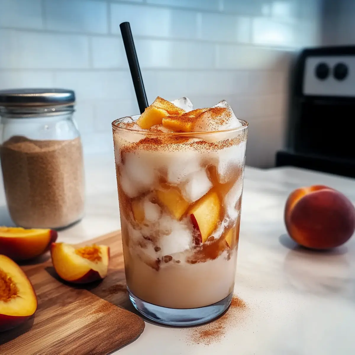 Finally, sprinkle a dash of ground cinnamon or nutmeg on top of your Iced Peach Cobbler Chai Latte before serving. This not only adds a lovely aromatic quality but also enhances the overall flavor profile of the drink. The warm spices will transport you to cozy autumn evenings, even on sunny summer days.