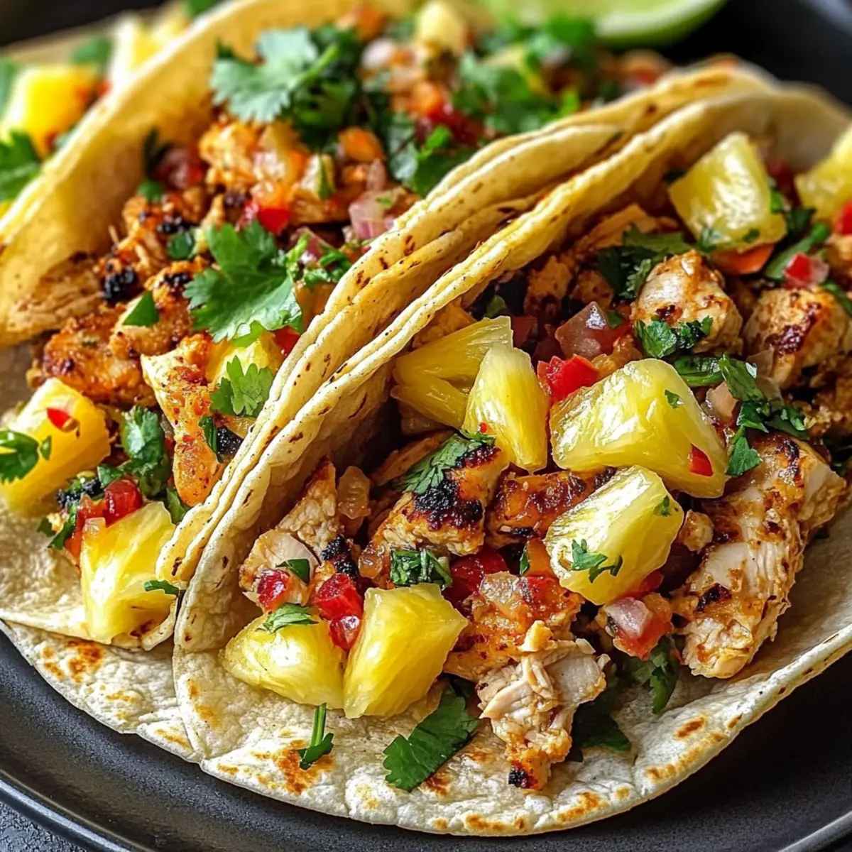 - Once assembled, serve your vibrant Pineapple Chicken Tacos immediately. Offer lime wedges on the side for an extra burst of freshness.