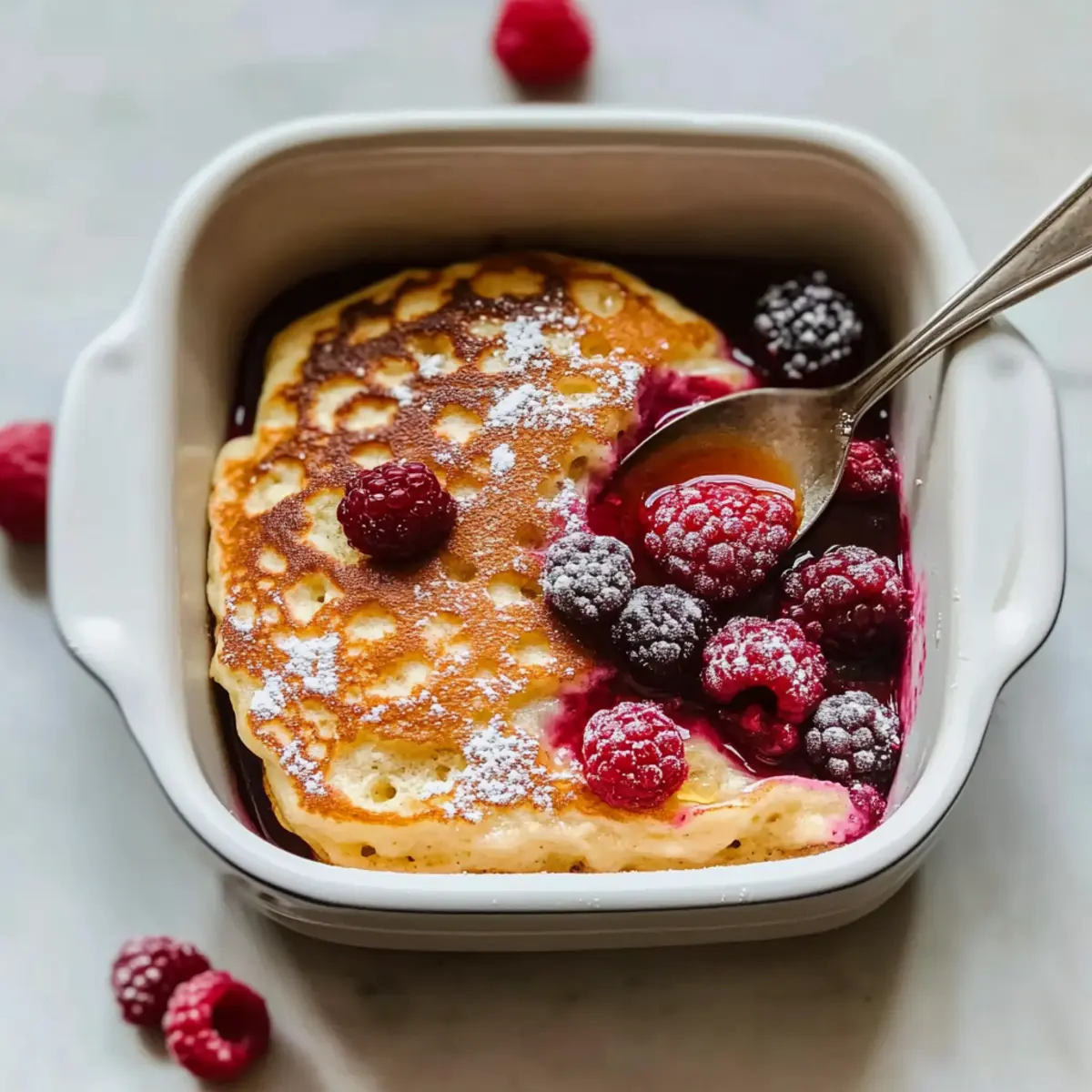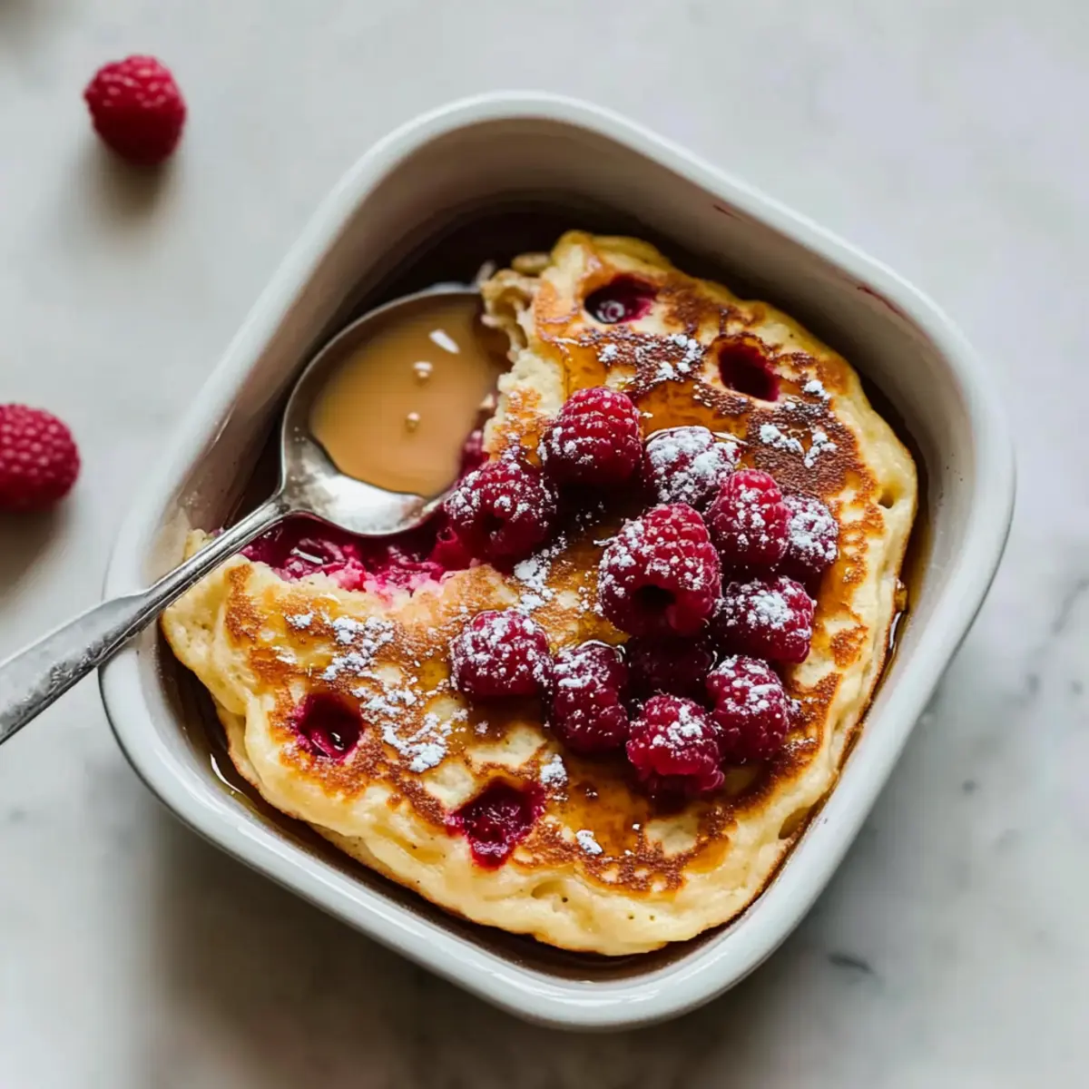 Right Dish Size: Use a baking dish between 5-8 inches wide for the best rise and thickness in your Protein Pancake Bowl.