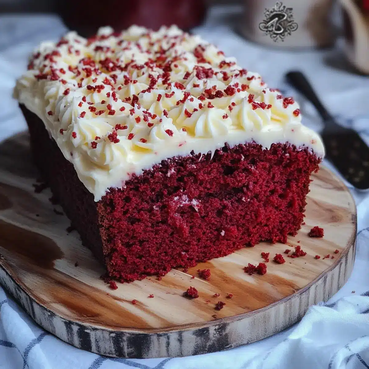 As I walked through a vibrant farmers’ market recently, a burst of deep crimson caught my eye—piles of fresh beets. The kind of color that beckons you to taste something special. Inspired, I rushed home to whip up my version of a classic Red Velvet Loaf Cake, adorned with luscious cream cheese frosting. This cake isn’t just visually stunning; it boasts a perfect balance of rich flavor and tender texture, making it an outstanding choice for everything from cozy gatherings to festive celebrations. Plus, its surprisingly quick prep time lets you indulge without the hassle, making it an easy favorite for both seasoned home chefs and those new to baking. Ready to impress your friends and family with a show-stopping dessert that celebrates the spirit of home cooking? Let’s dive into this delightful recipe together!