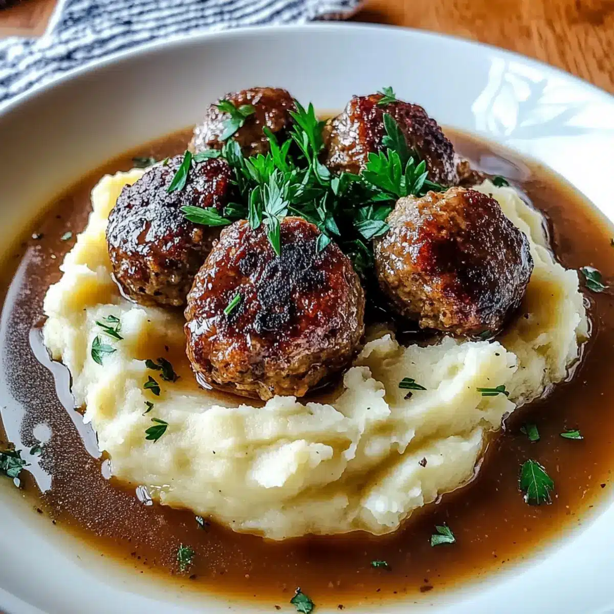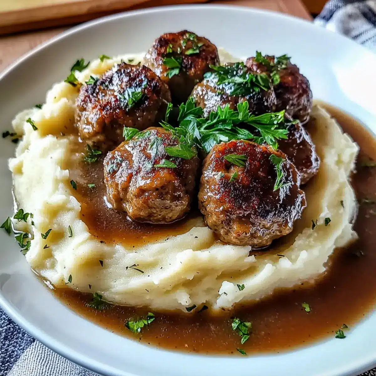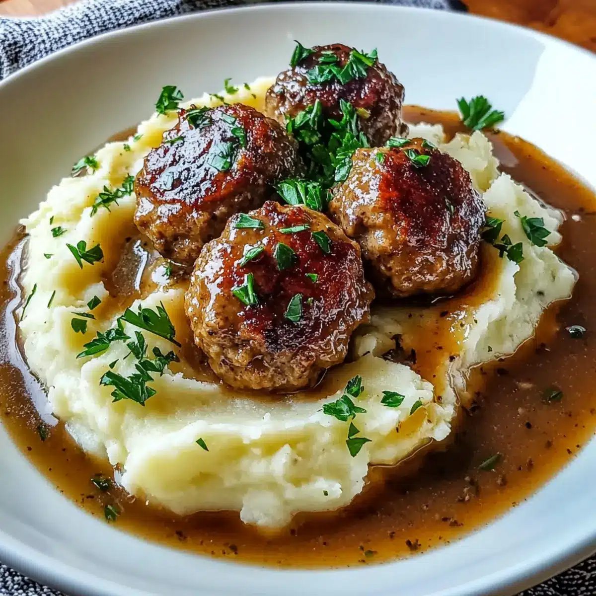 Savor Tender Salisbury Steak Meatballs with Garlic Herb Mashed Potatoes