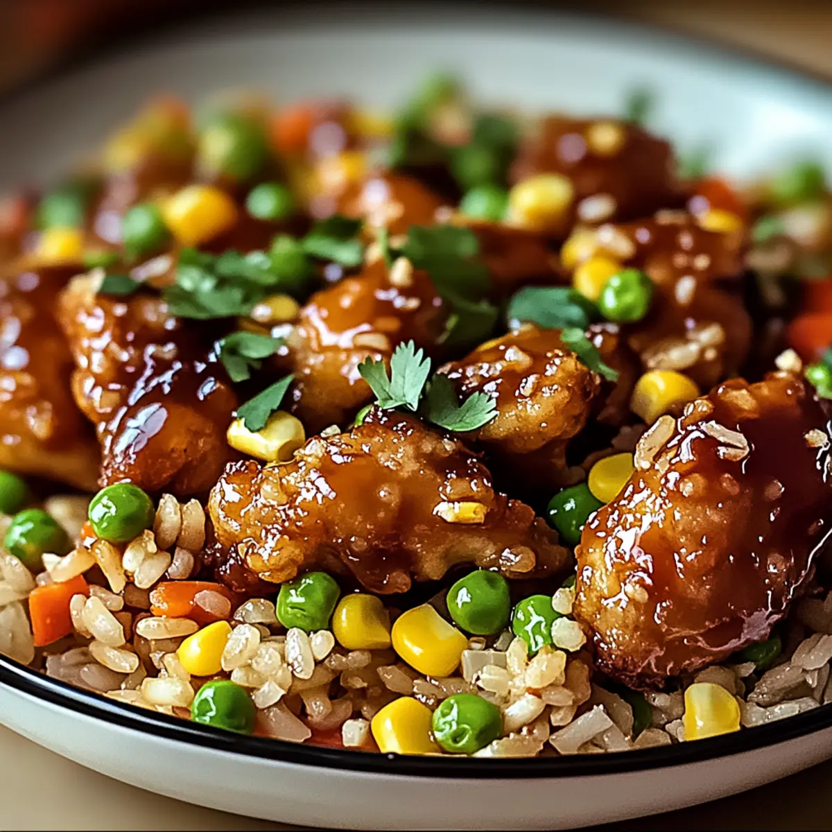 Crispy Saucy Chicken with Vegetable Fried Rice Bliss