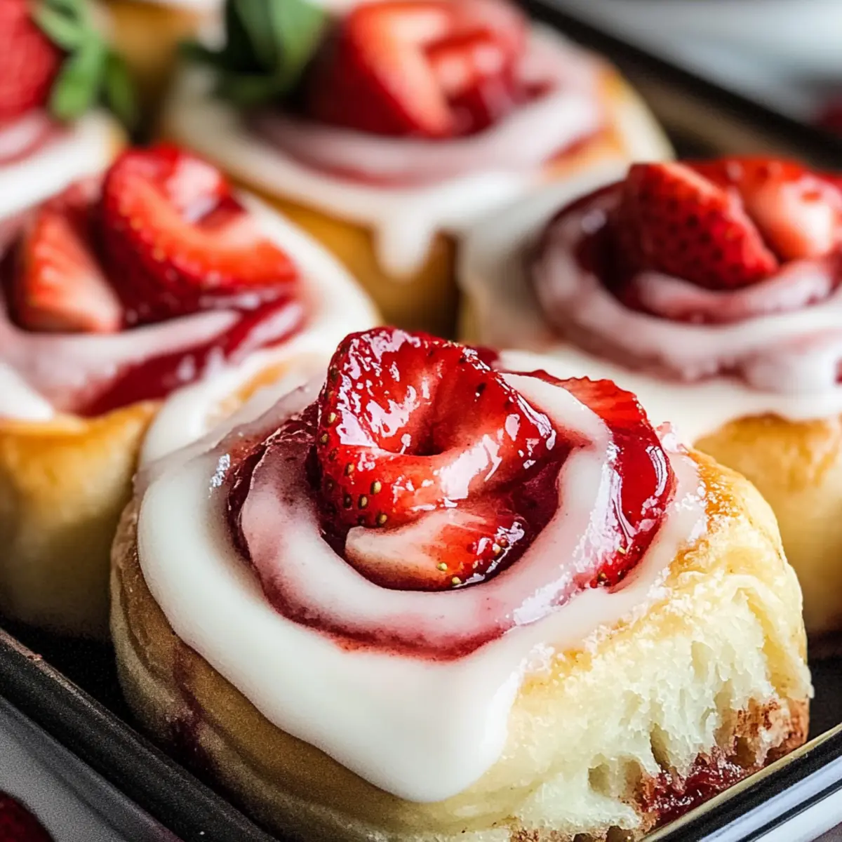 Fluffy Texture: Enjoy the mouthwatering softness of each roll, perfectly balanced with creamy icing and fresh strawberries for that homemade touch.