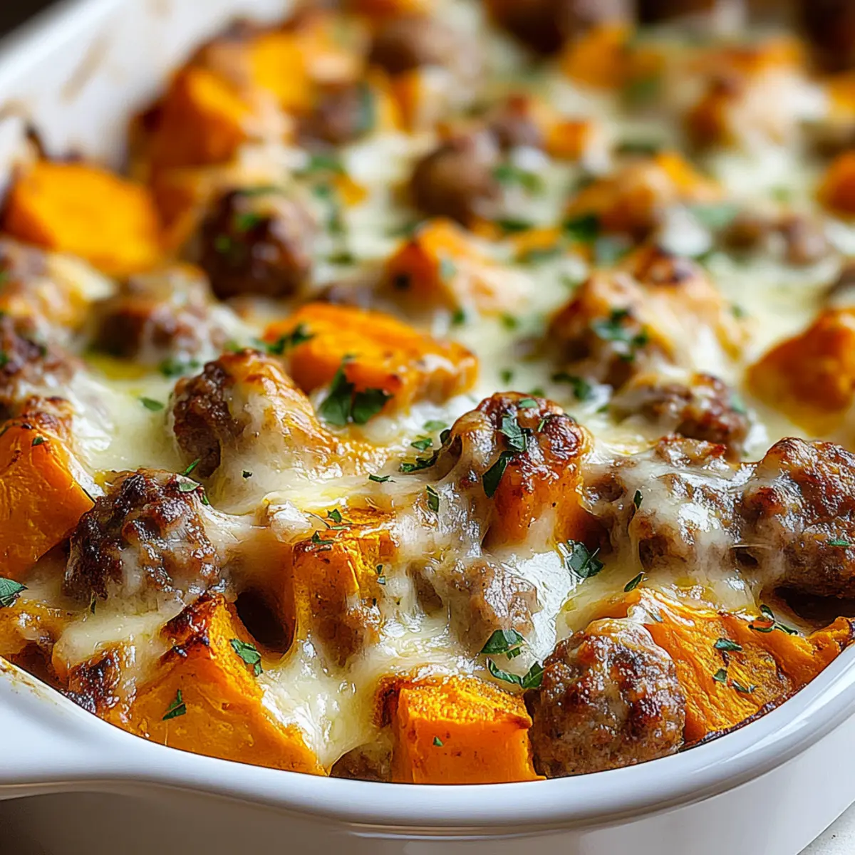 Comforting warmth: This Fall Sweet Potato and Sausage Casserole is your go-to dish for cozy nights, combining sweet potatoes and savory sausage in a way that warms the heart.